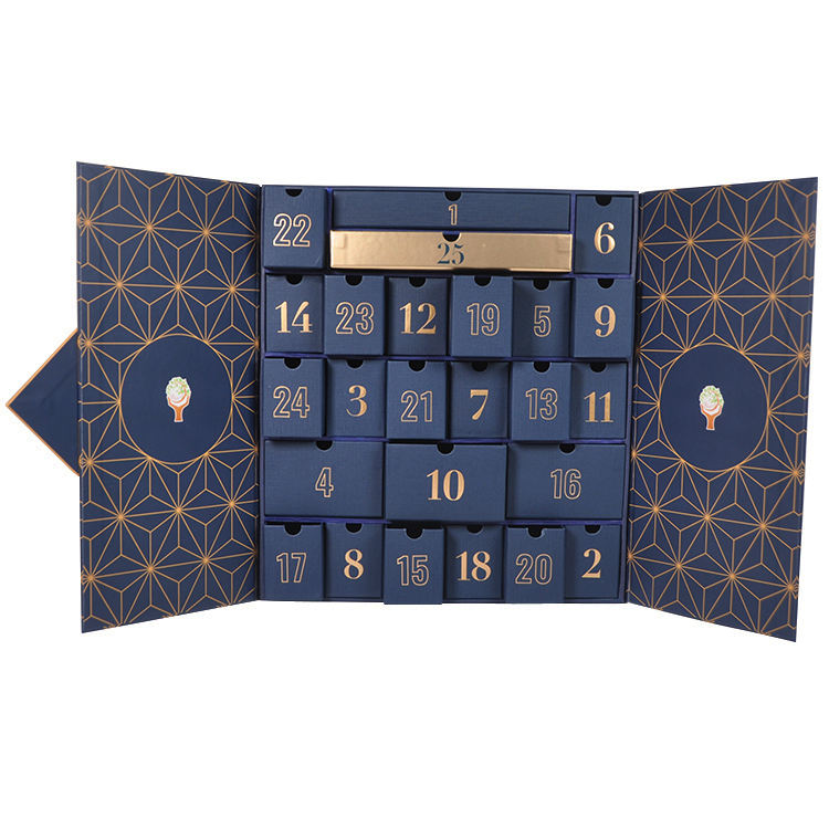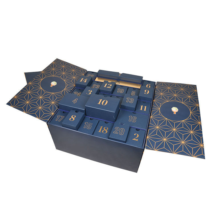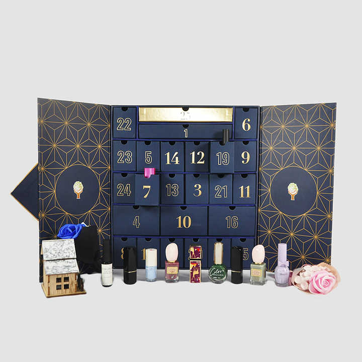 Caja de regalo con sabor a cuenta regresiva de cartón hecha a medida, embalaje esencial reciclado para juego de cosméticos, calendario de Adviento de belleza en relieve