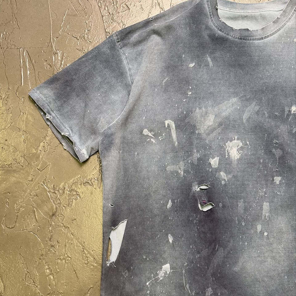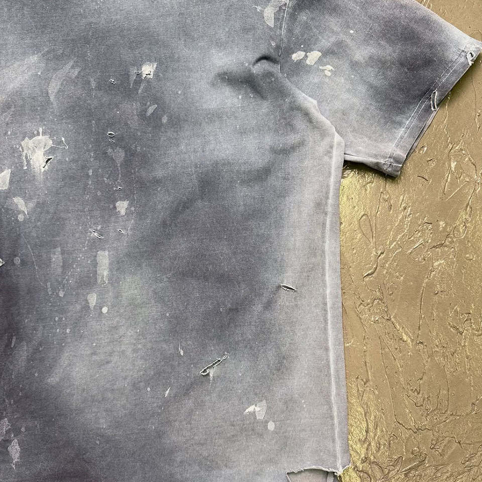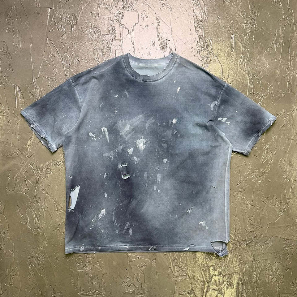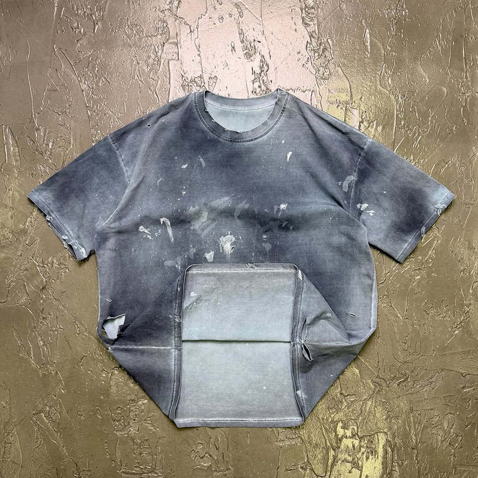 Nuevas Camisetas Personalizadas Extra Grandes de Corte Recortado, 100% Algodón Grueso, Lavado Ácido Vintage, con Efecto de Salpicaduras de Pintura y Desgastado para Hombre