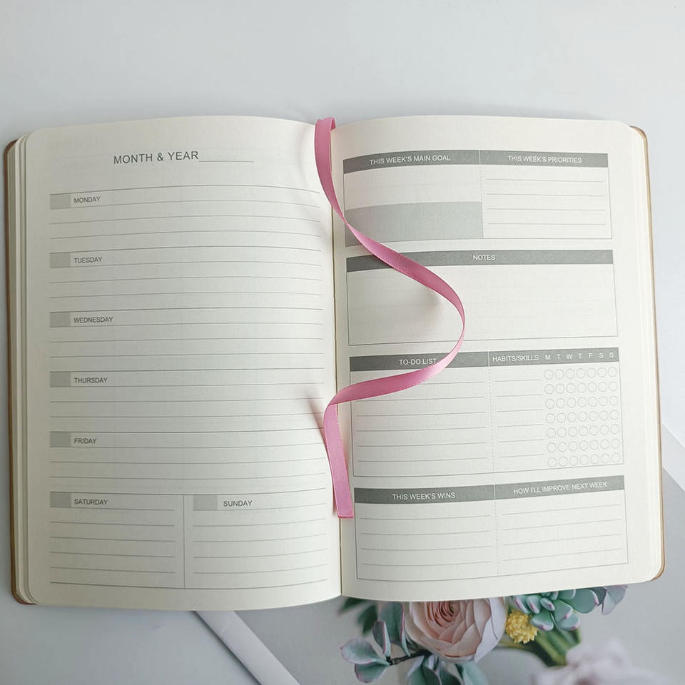 Agenda de cubierta blanda personalizada con logotipo a granel, conjunto de bloc de notas, objetivos, planificador semanal, cuaderno con pegatinas, A5, nuevo