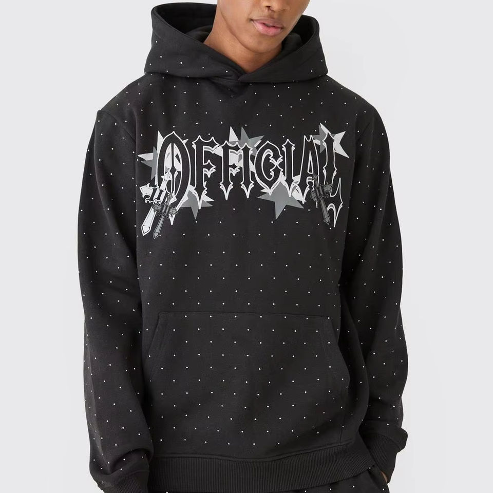 Nuevo chándal personalizado con diamantes de imitación y logotipo de impresión de pantalla Sudadera con capucha