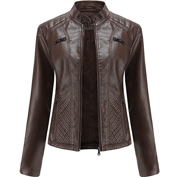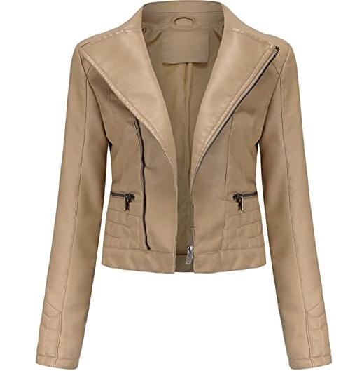 Nueva chaqueta de piel sintética de invierno de Color sólido personalizada para mujer, ajustada para trabajar al aire libre, moda en blanco con cremallera, chaquetas de cuero auténtico 2025