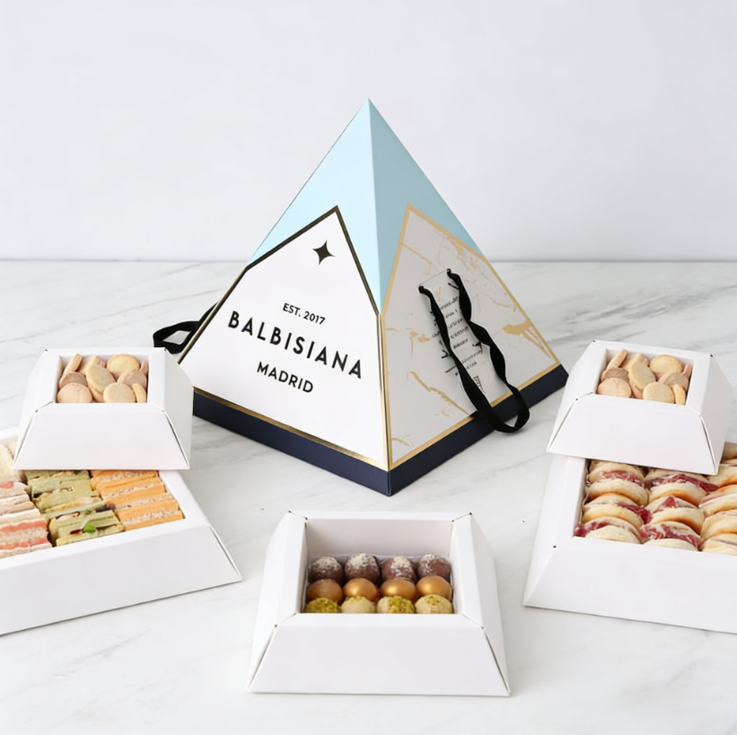Nueva Caja Piramidal Personalizada para Comida Halal para Llevar, Caja para Aperitivos Árabes, Pastelería Dulce, Postre Kunafa, Empaque Piramidal para Platos de Aperitivos