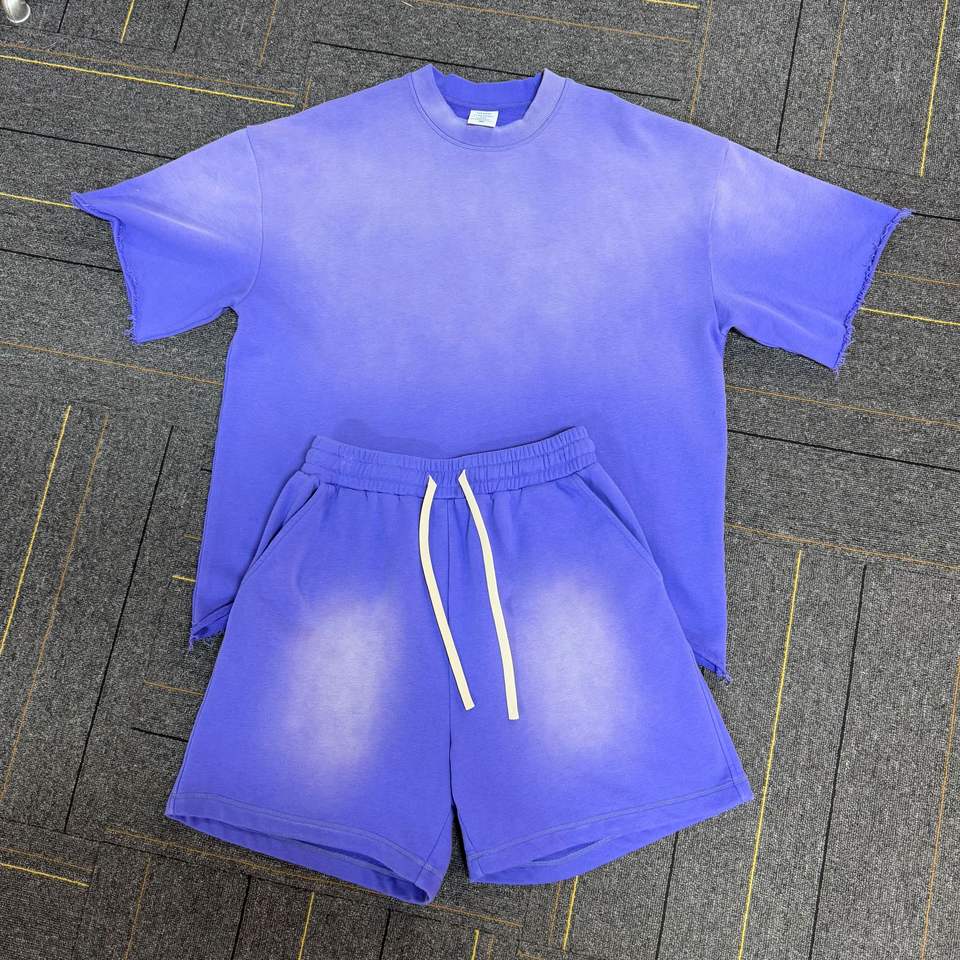 Nuevo conjunto de pantalones cortos personalizados de dos piezas para hombre, ropa con logotipo imprimible, conjunto corto de 2 piezas, trajes de lavado ácido, conjuntos cortos para hombre, dos piezas
