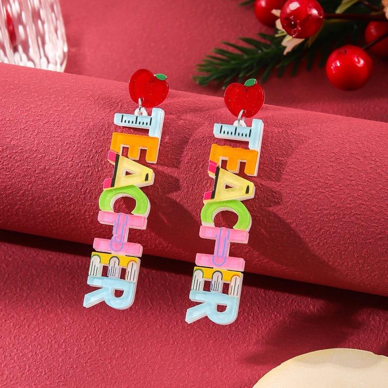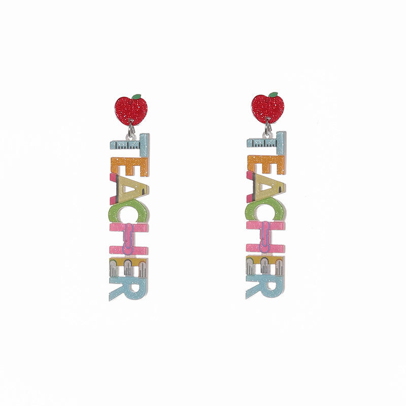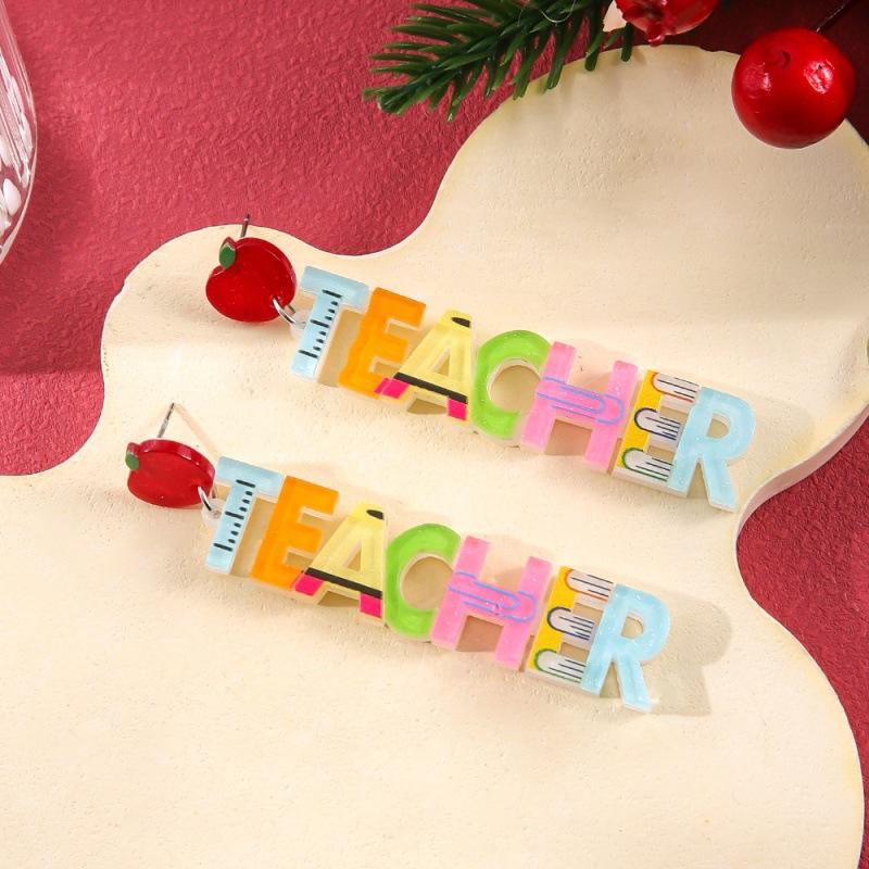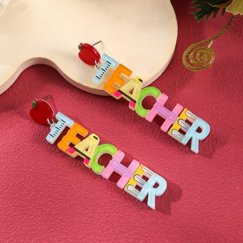 Nuevo regalo personalizado de regreso a la escuela, pendientes acrílicos con letras Rainbow TEACHER listos para enviar