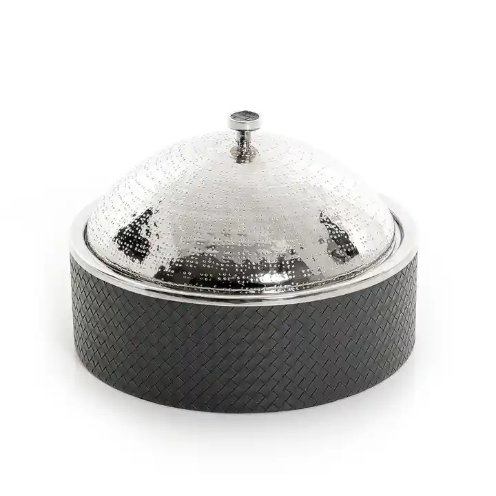Cazuela de metal con forma redonda de madera y acero inoxidable para los utensilios de cocina más vendidos, olla caliente, servidor calentador de alimentos