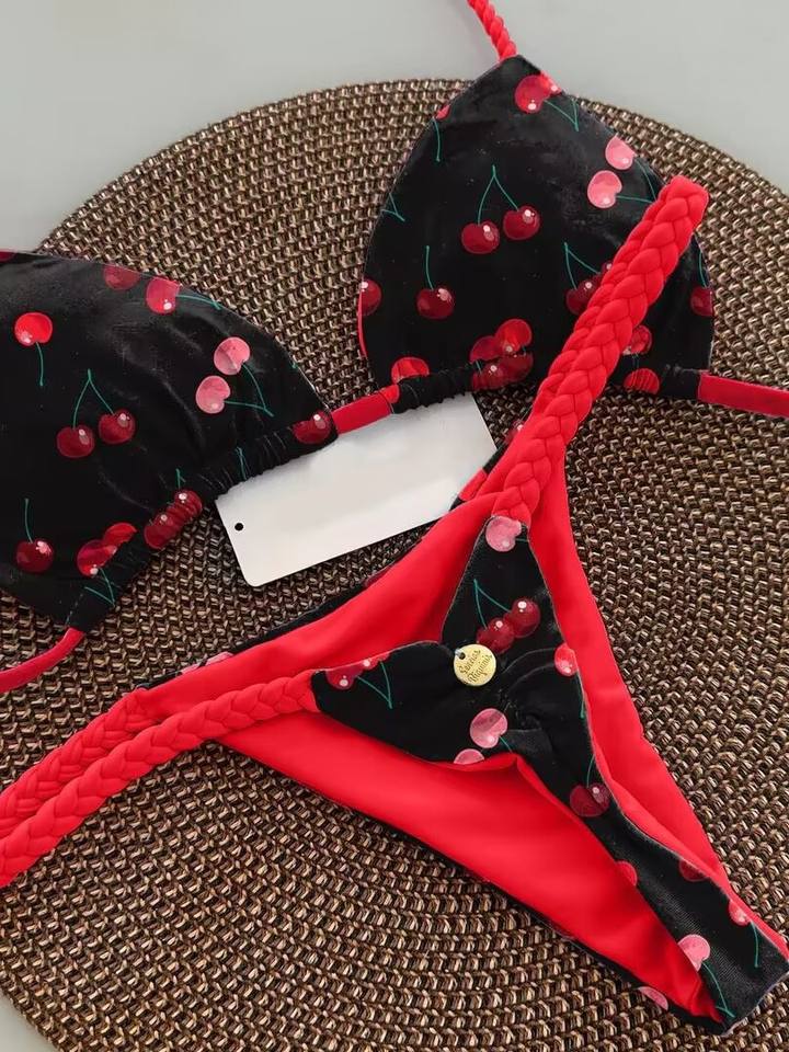 Nuevo traje de baño de Bikini de estilo Ins para Mujeres Europeas americanas personalizado Sensual tres puntos sin espalda Halter tejido cuello redondo patrón