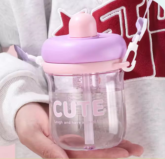 Nueva Botella de Agua de Plástico Personalizada, Portátil, Linda, para Estudiantes, Niñas, Regalo, Vaso de Plástico con Pajita