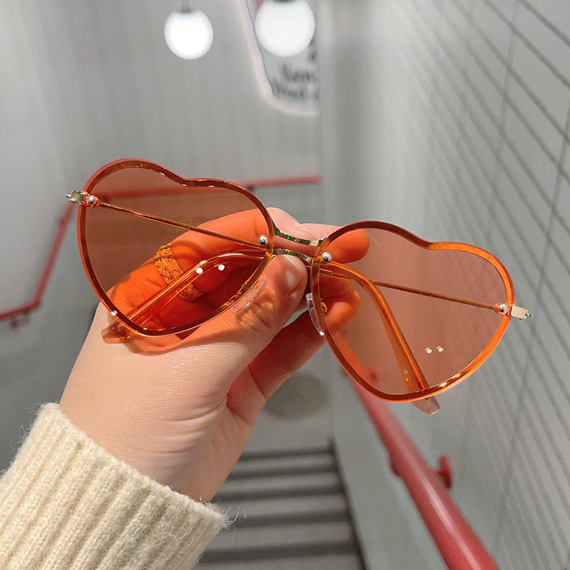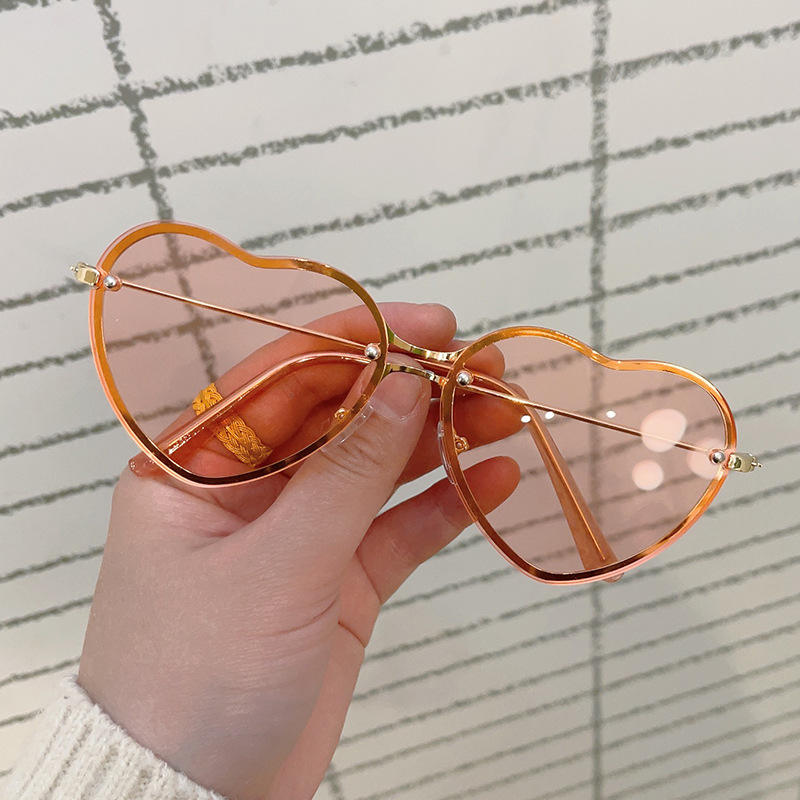 Nuevo Cute PC UV400 Marco de metal Diseño de corazón Gafas de sol Candy Mujeres Unisex Azul Oro Verde Amor Forma de corazón Damas Caballeros