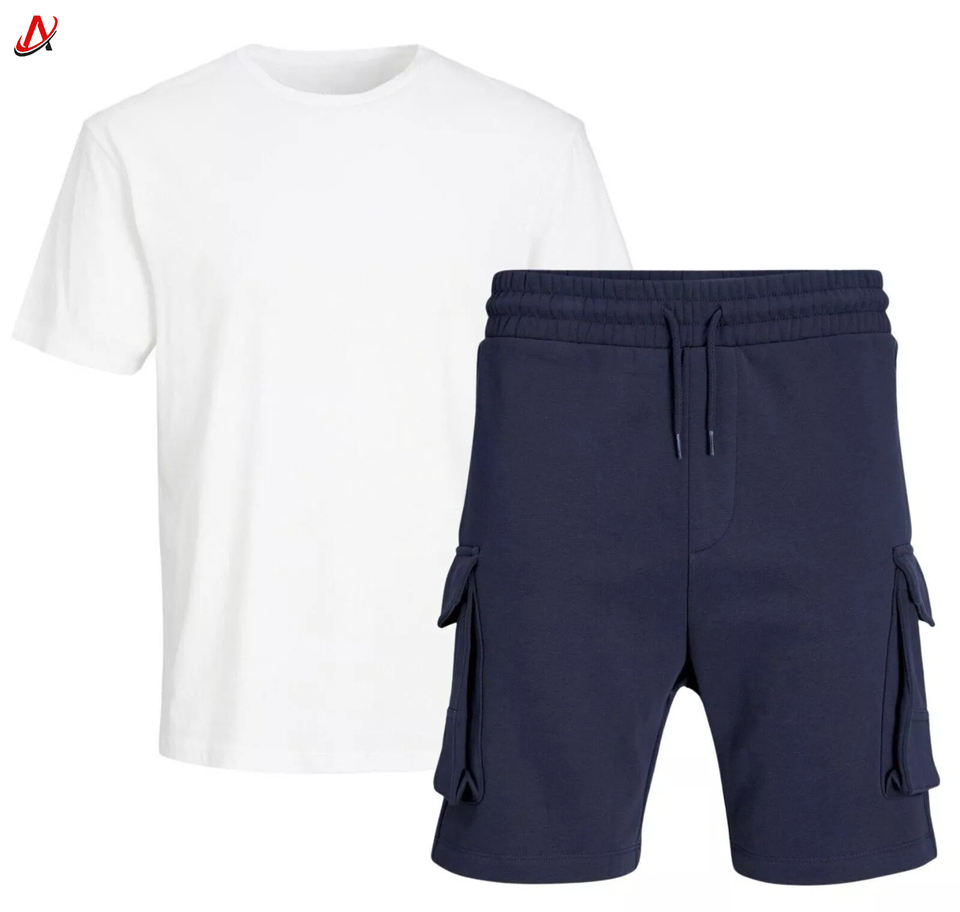 Conjunto de chándales de ropa deportiva informal para fitness, chándales de verano de secado rápido de algodón 100%, conjunto de pantalones cortos para hombres con logotipo impreso