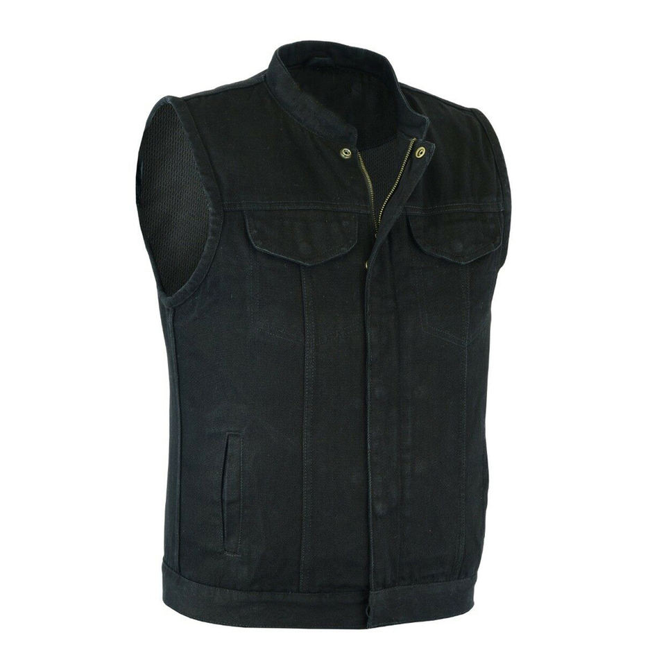 Chaleco vaquero sin mangas de estilo motero para hombre, remache Punk Rock vaquero negro