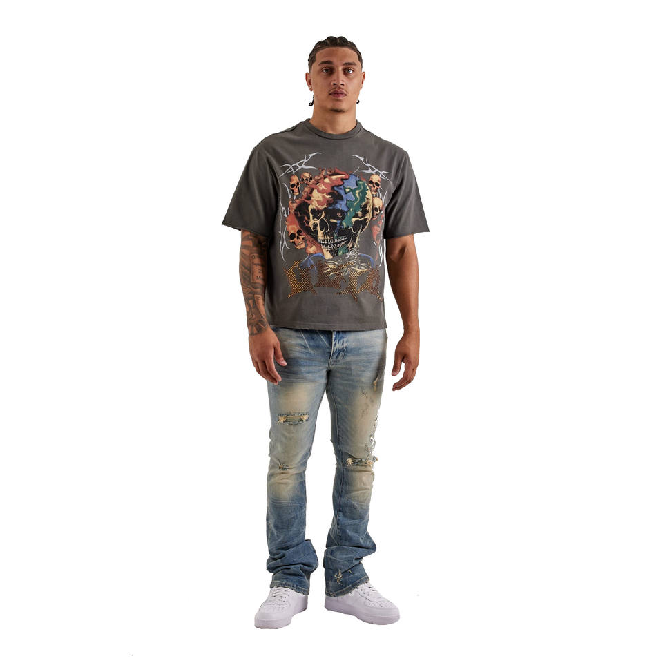 Nuevo diseño Vintage Casual Street Wear Acid Wash Camiseta Hombre 100% Algodón Peso pesado Oversize Impresión en blanco Decoración de diamantes de imitación