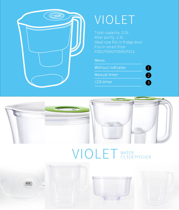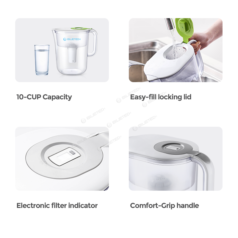 Purificador de agua ionizador alcalino con filtro, 10 tazas de capacidad, elimina el cloro, bacterias y metales pesados