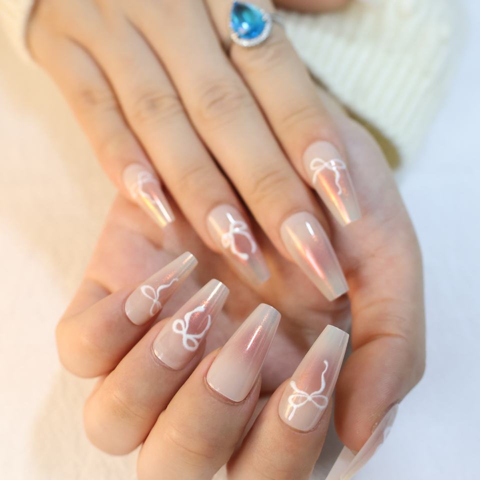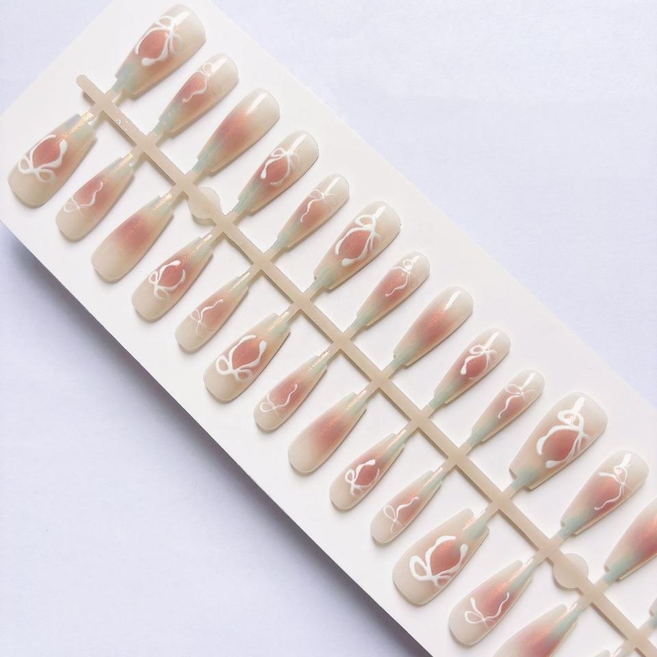 Nuevo diseño, 10 Uds., patrones de lazo de ataúd medio reutilizables, uñas postizas, prensa degradada rosa en las uñas para niñas