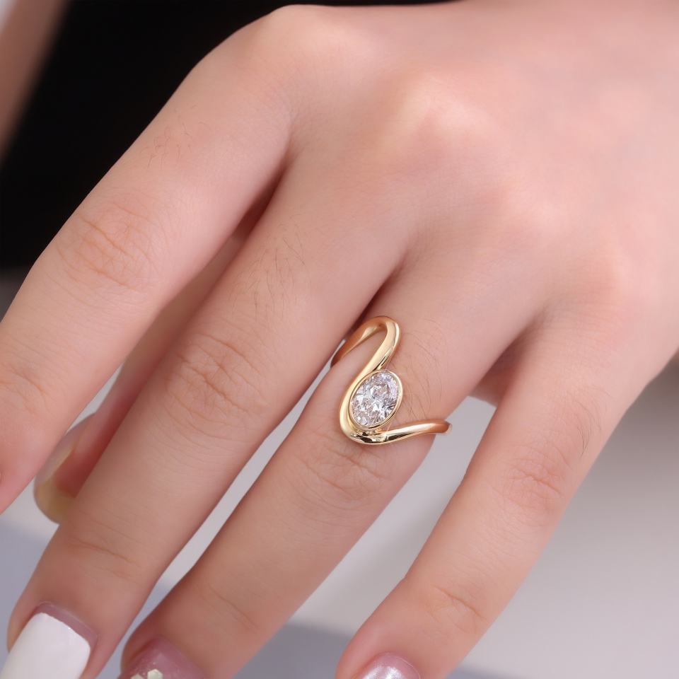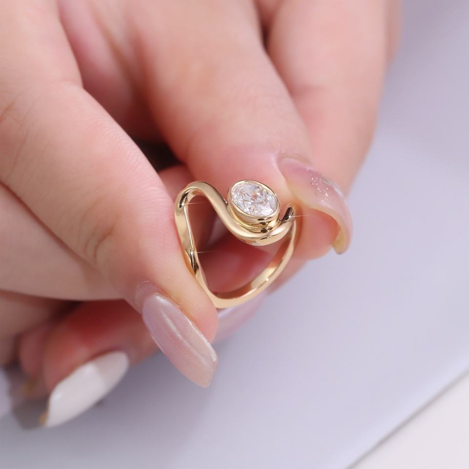 Anillo de Oro Amarillo de 18K con Diamante de Laboratorio con Certificado IGI, Estilo Serpiente con Corte Ovalado para Mujer, Diseño Nuevo