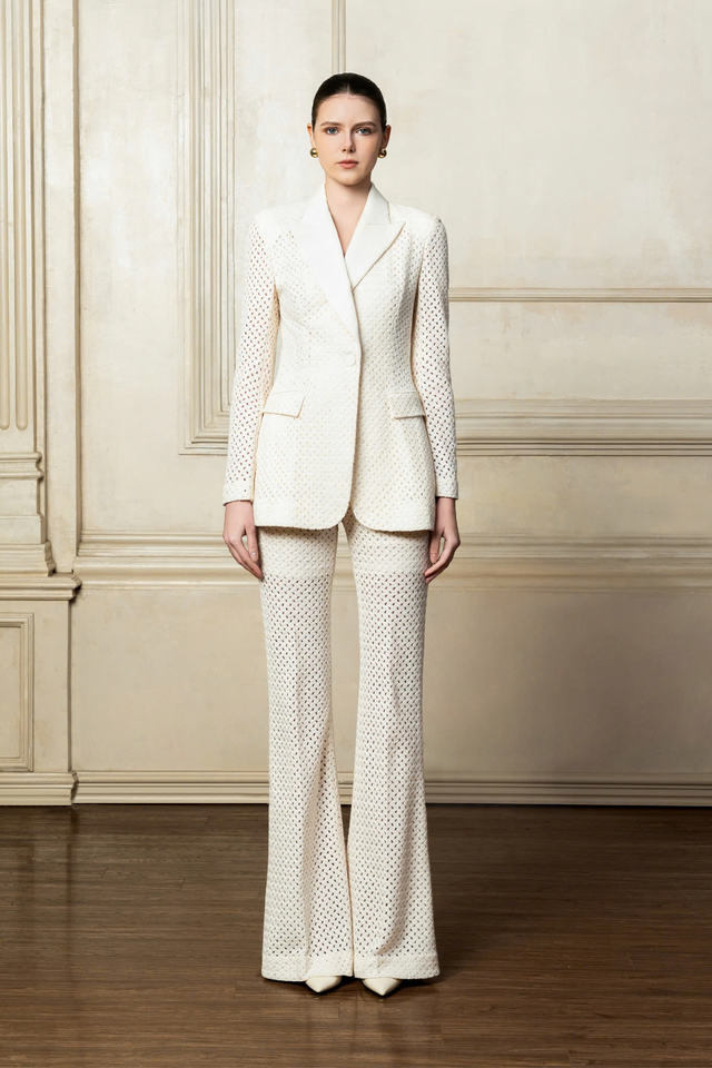Nuevo diseño 2025 conjunto de chaqueta Formal para mujer un botón CLEF NOTCHED BLAZER tela de celosía rústica ropa de verano para mujer
