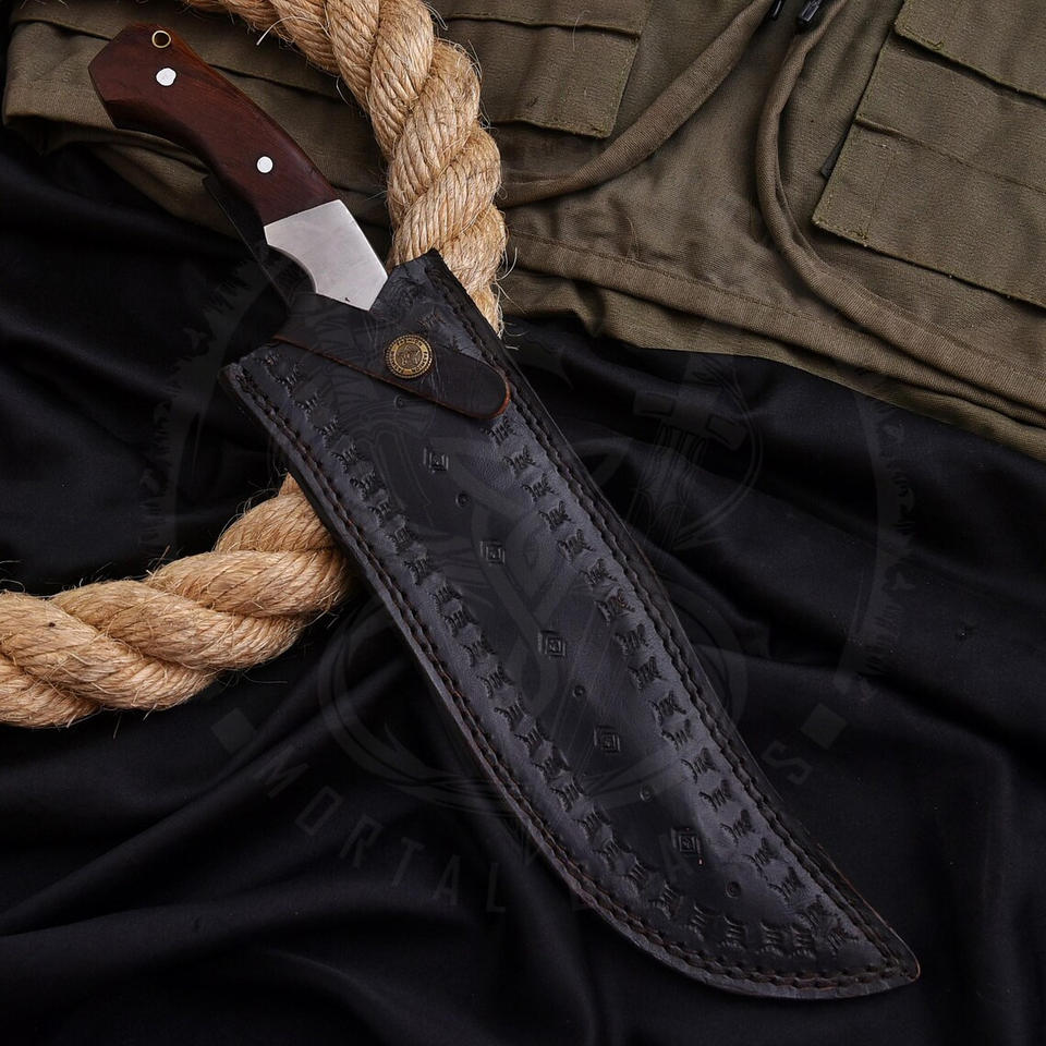 Nuevo Diseño 2026 Cuchillo Bowie de Acero D2 Hecho a Mano con Mango de Madera y Funda de Cuero Premium Perfecta para Camping, Cuchillo de Hoja Fija