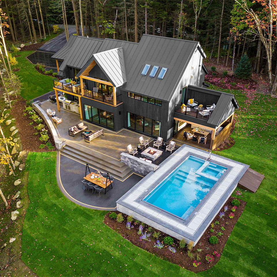 Nuevo diseño Contenedor de envío de 40 pies Spa de 20 pies y piscina de 15 pies Piscinas duraderas de fibra de vidrio de 10m para la venta