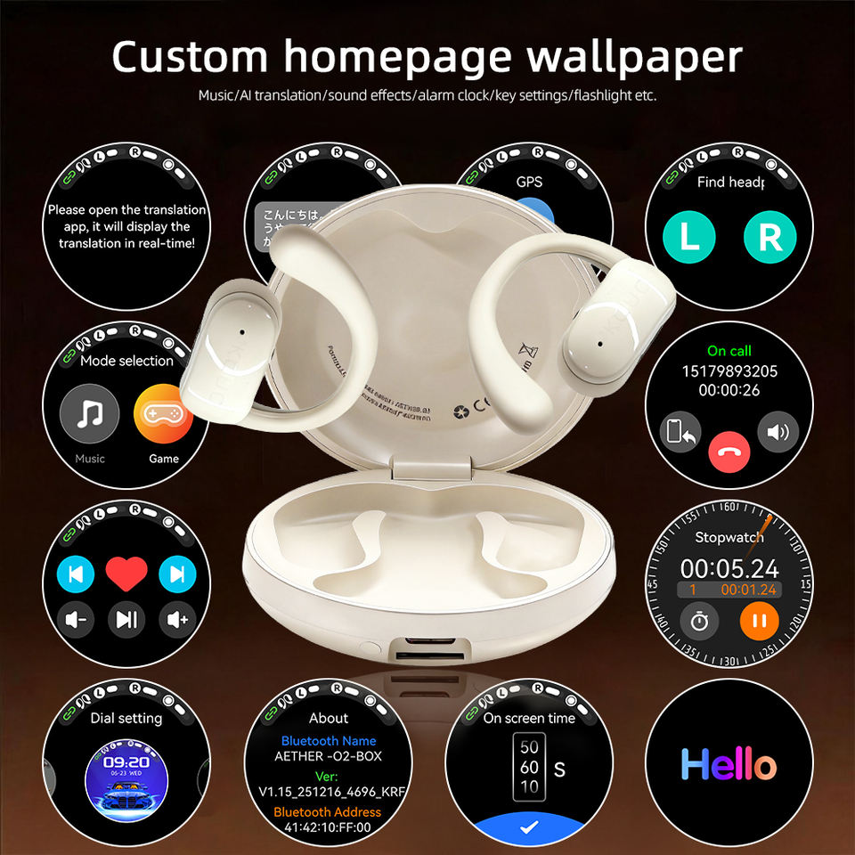 Audífonos Inalámbricos con Traducción IA de Nuevo Diseño, Pantalla Táctil LED, Audífonos para Juegos con Resistencia al Agua IPX4 5.4