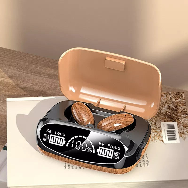 Nuevo diseño BT 5,3 M35 Tws Auriculares inalámbricos de grano de madera Auriculares Pantalla LED Sonido estéreo Auriculares Audifon Auricular