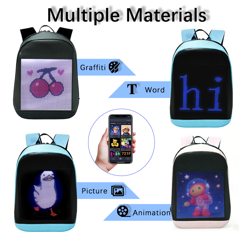 Programable por aplicación inalámbrica: La función programable por aplicación inalámbrica permite a los usuarios actualizar y personalizar fácilmente el contenido de la pantalla, proporcionando flexibilidad y comodidad en la personalización de la mochila.