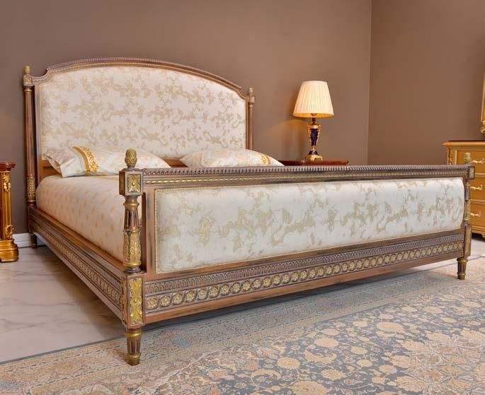 Cama de nuevo diseño para dormitorio con tapicería moderna de estilo clásico, el mejor precio con marco de madera de caoba y acabado dorado