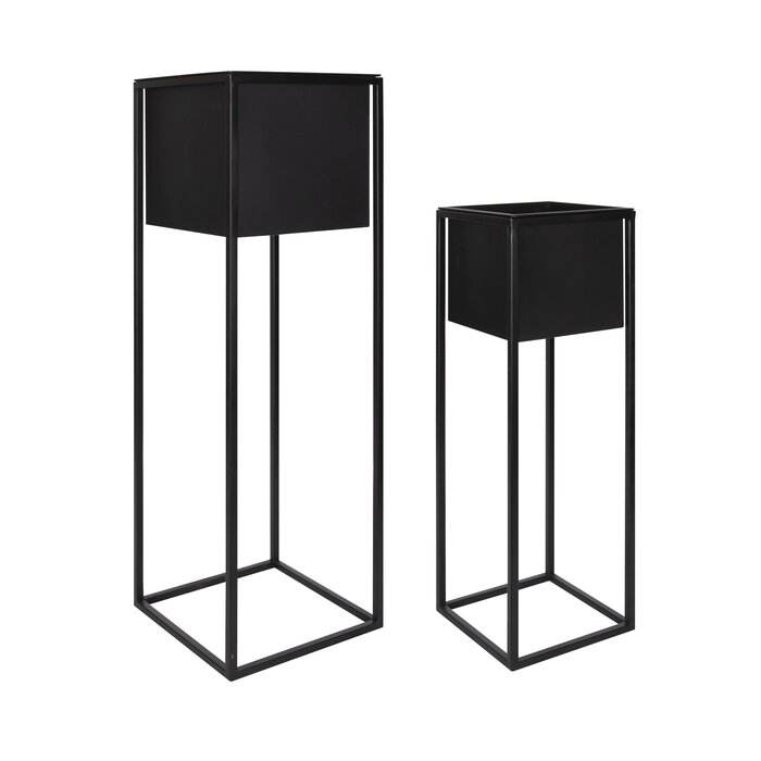 Macetas de metal con revestimiento de polvo negro de nuevo diseño, soportes para el hogar, jardín, hoteles, restaurantes, sala de estar, urna de suelo