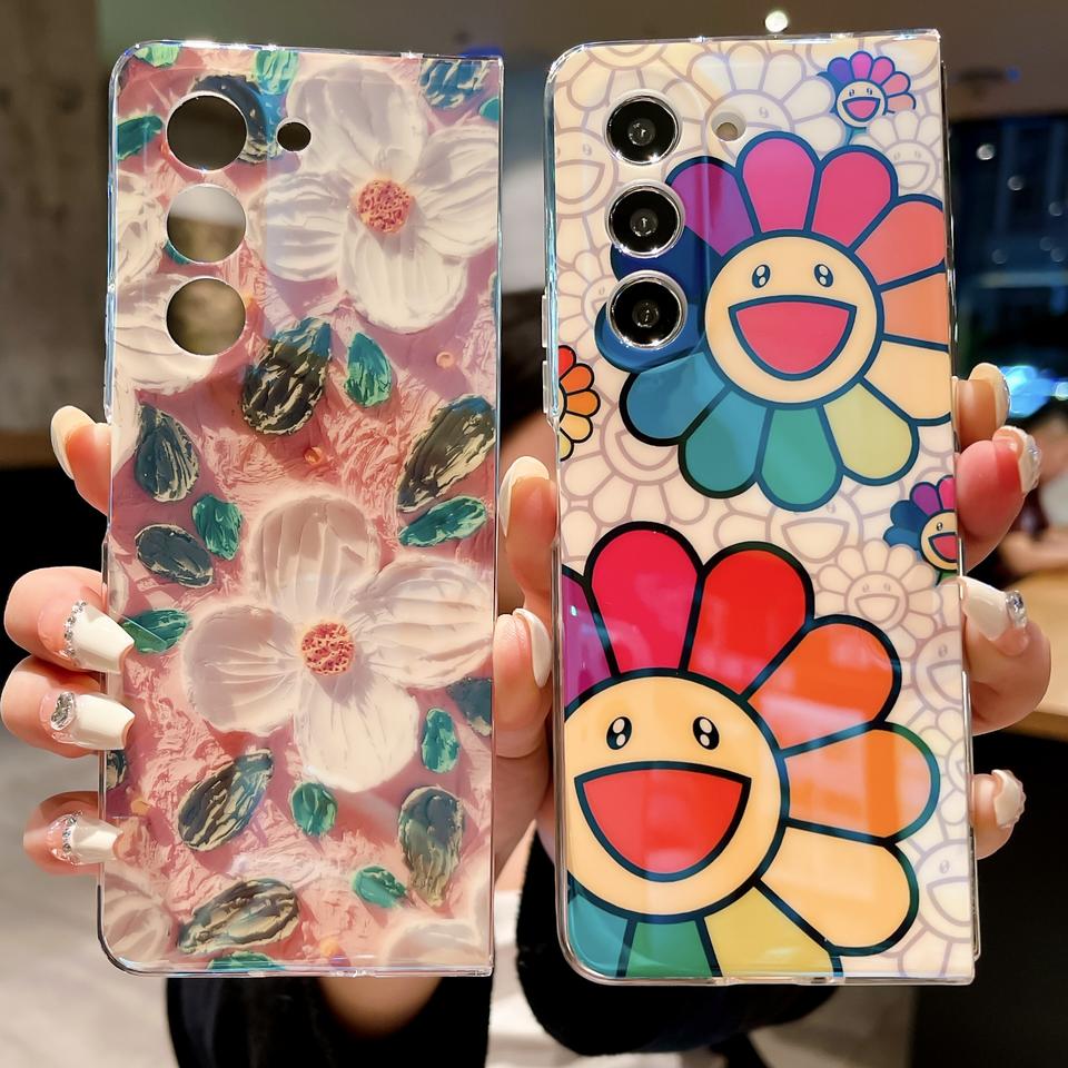 Nuevo diseño Blue Ray Oil Paint Flower Phone Case para Samsung Z Fold 3 4 5 Pantalla plegable Imd Women Phone Cell para Samsung