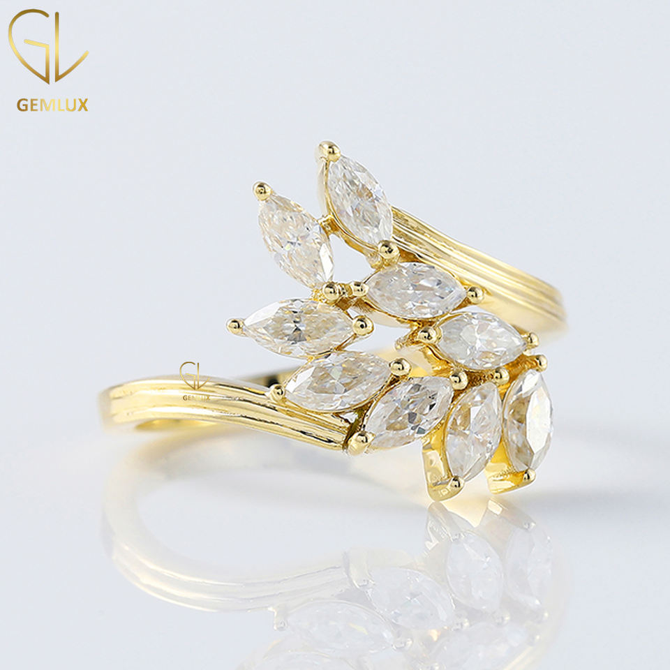 Anillo nupcial de derivación de nuevo diseño, anillo de compromiso de diamante de corte Marquesa, anillo de oro macizo de 14K para mujer