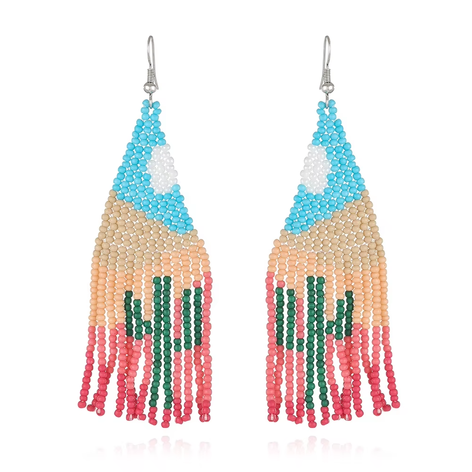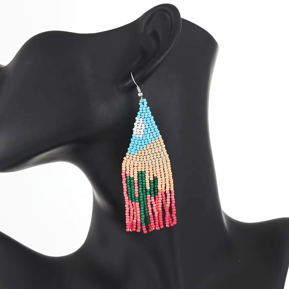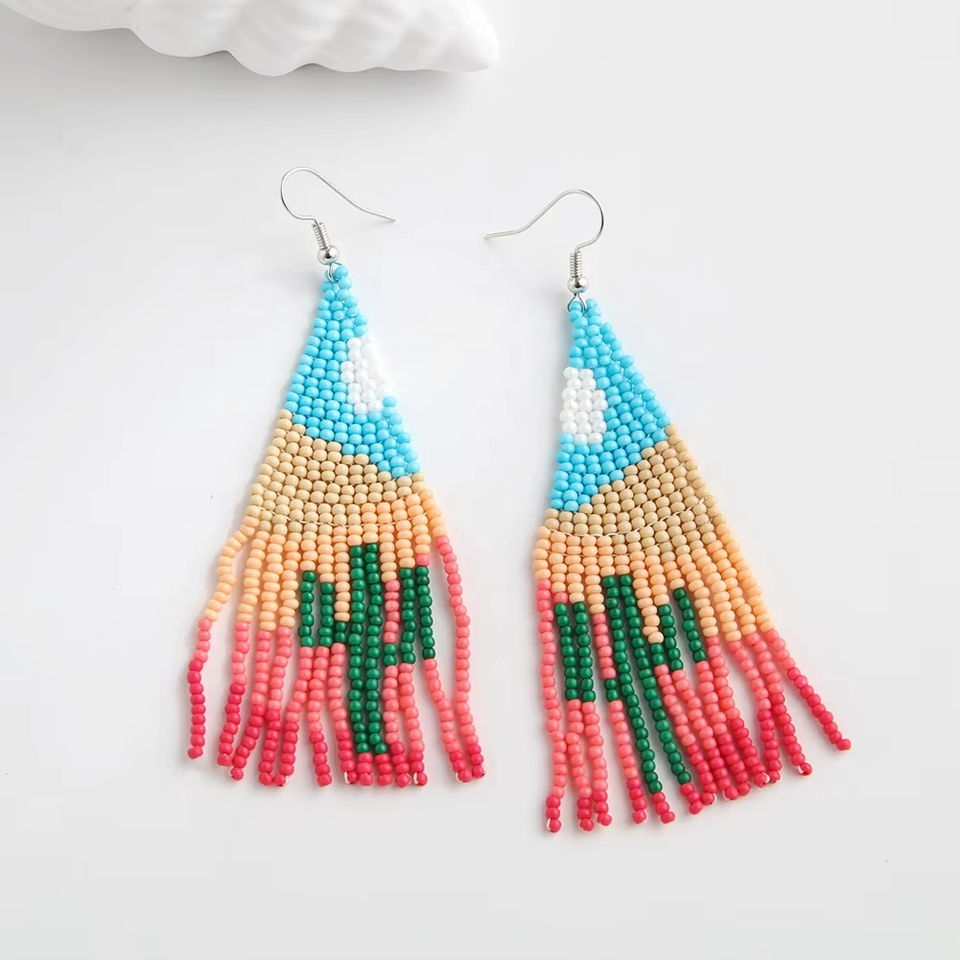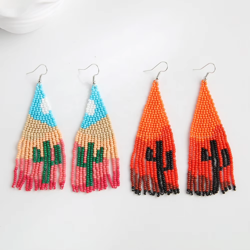 Pendientes Largos con Borlas y Diseño de Cactus, Hechos a Mano, Estilo Bohemia, con Cuentas Miyuki Trenzadas, para Mujer