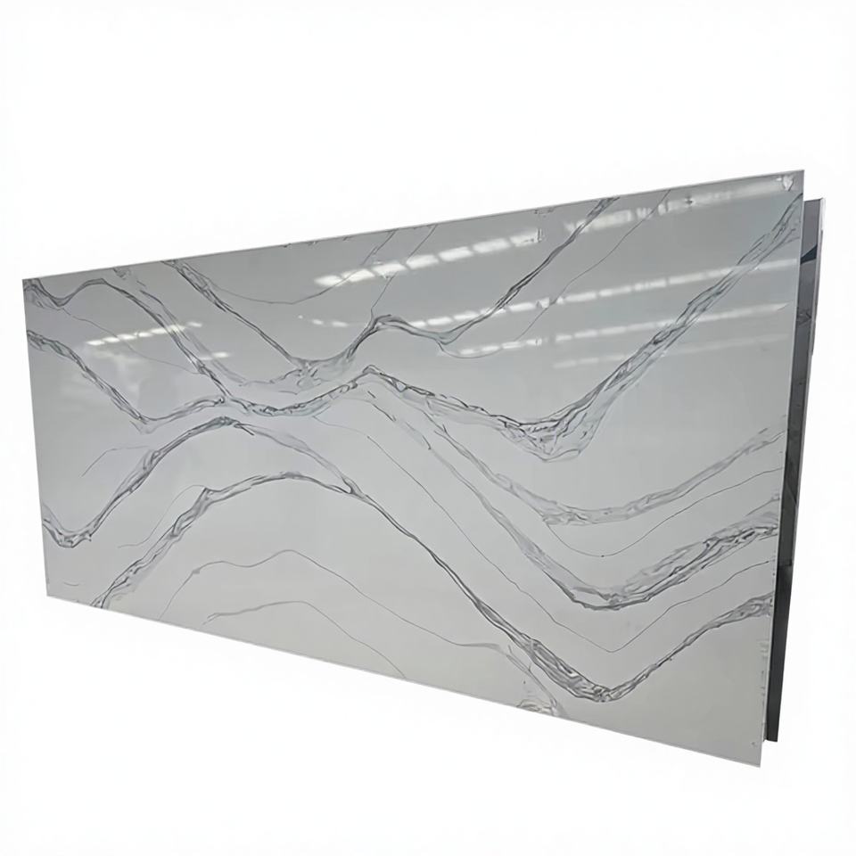 Nuevo Diseño Moderno de Losa Grande de Cuarzo Gris Calacatta con Tamaño Personalizado para Encimeras de Cocina y Baño