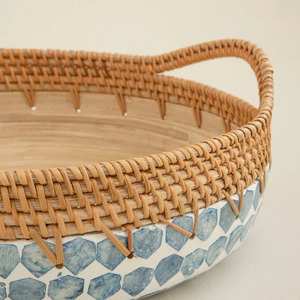 Nombre del producto:Capiz Shell Inlay Spun cuencos de postre de bambú con Ratán