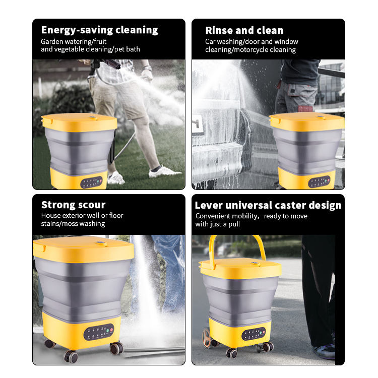 Nuevo diseño, lavadora de coches, Motor sin escobillas de alta presión, máquina de agua pulverizada ajustable portátil con cubo plegable, limpiador de coches