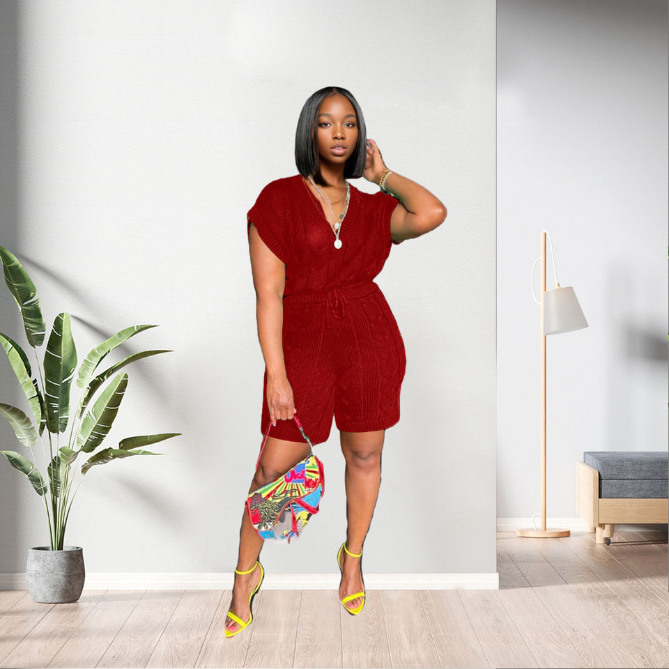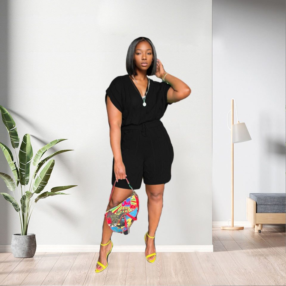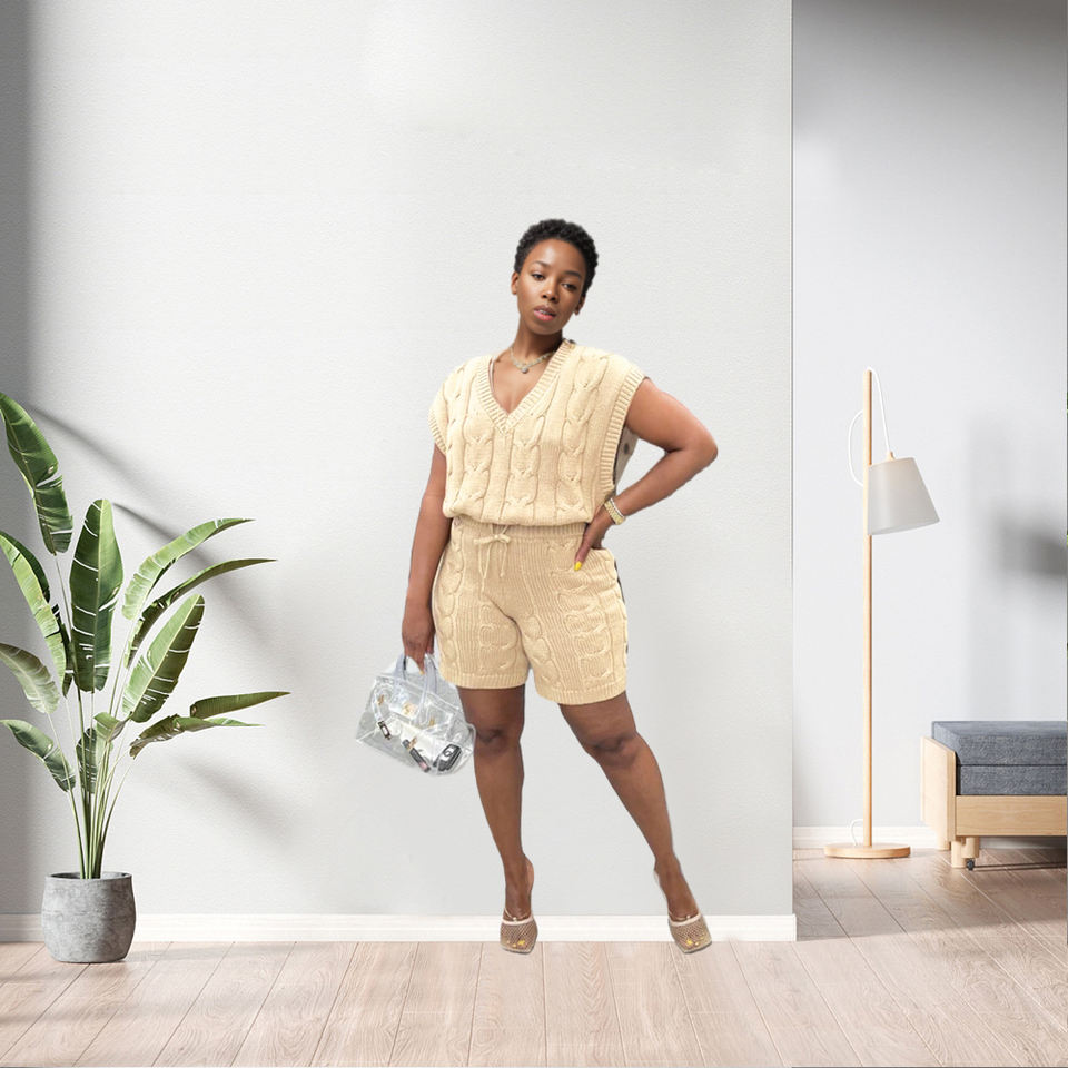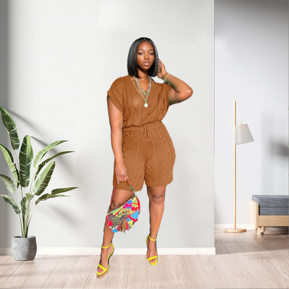 Nuevo Diseño Casual de Color Sólido, Conjunto de Dos Piezas de Pantalones Cortos de Punto de Manga Corta, Moda Femenina