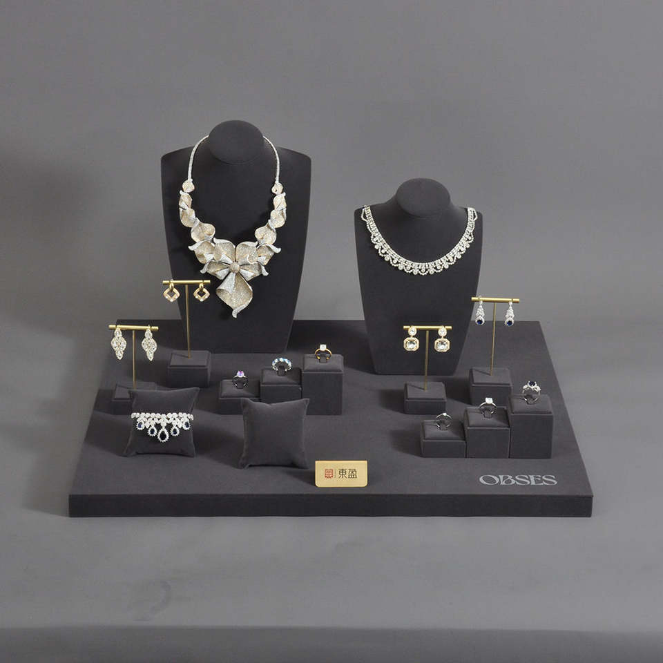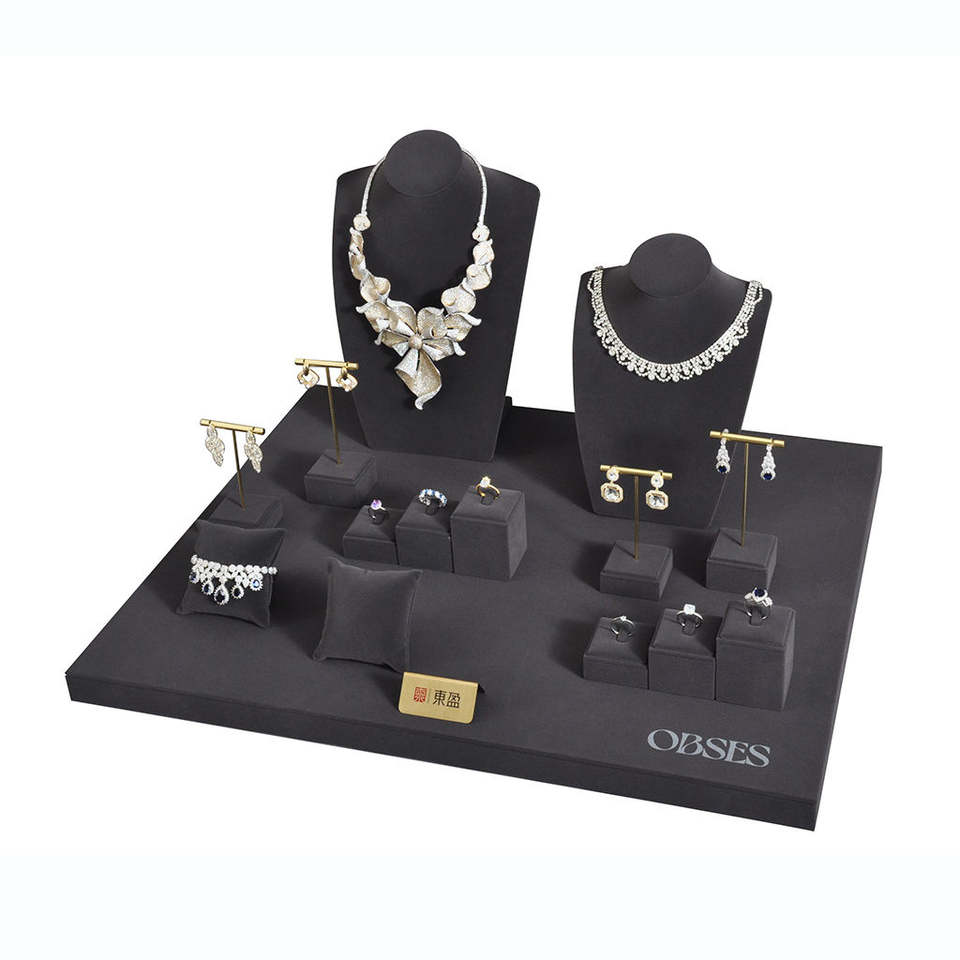 Nuevo Diseño, Juego de Exhibidores de Joyería, Bandeja de Cuero para Joyas, Soporte para Anillos, Pulseras, Collares y Pendientes