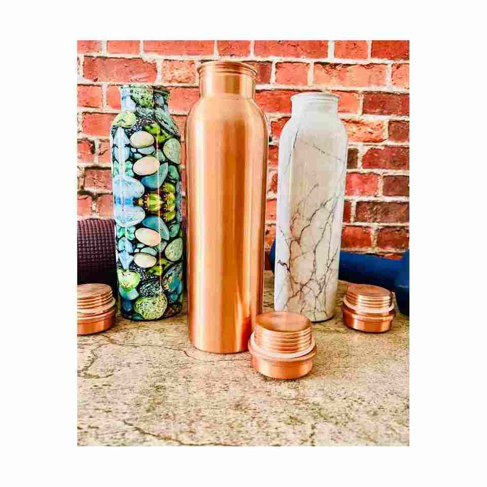 Botella de agua de cobre de alta calidad, nuevo diseño, fabricación india, uso escolar amplio con etiqueta de botella de vino, vasos perfectos