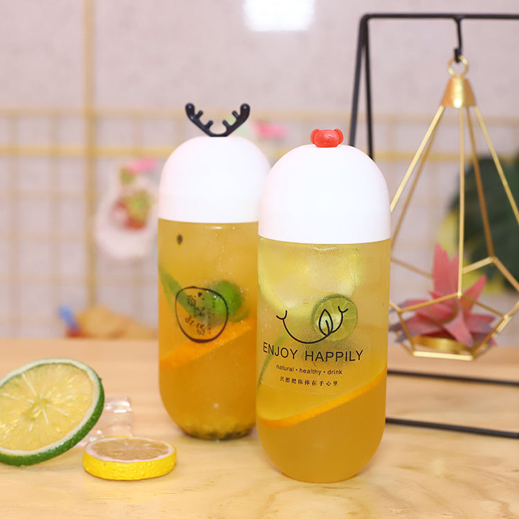 Nuevo Diseño Creativo Personalizable, Botella Vacía Transparente de 500 ml con Forma de Cápsula para Bebidas, Jugos de Frutas, Té con Leche Boba