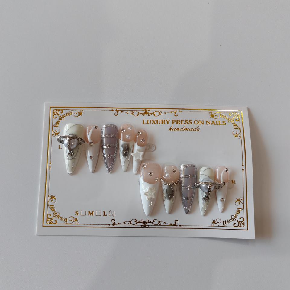 Cuadrado, Circular, Almendra, Mariposa, ESTRELLA, Cielo ESTRELLADO, Consejos largos, Corazón, Dibujos animados, Degradado, HOJA, StilettoPatrón