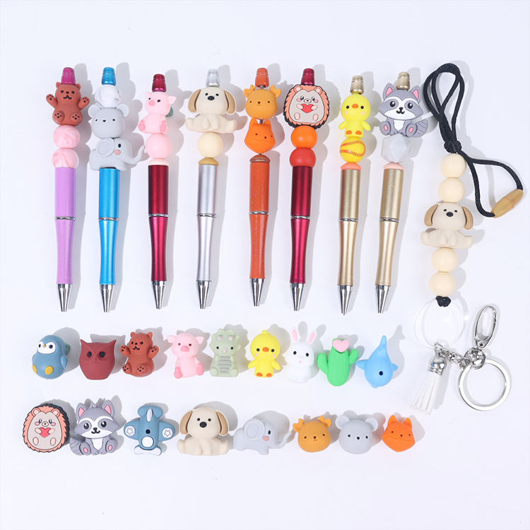 Nuevo diseño personalizado dibujos animados elefante perro dinosaurio pingüino encantos Diy accesorios 3D silicona Focal cuentas para hacer bolígrafos con cuentas