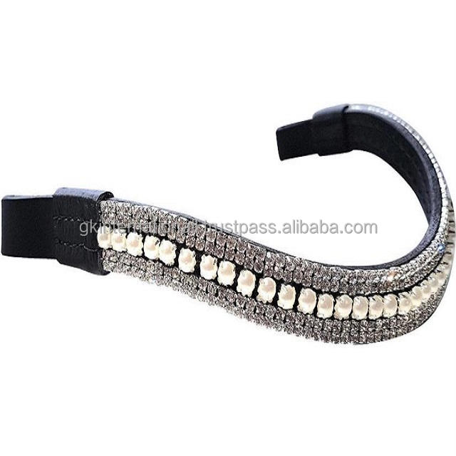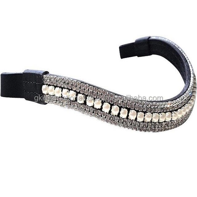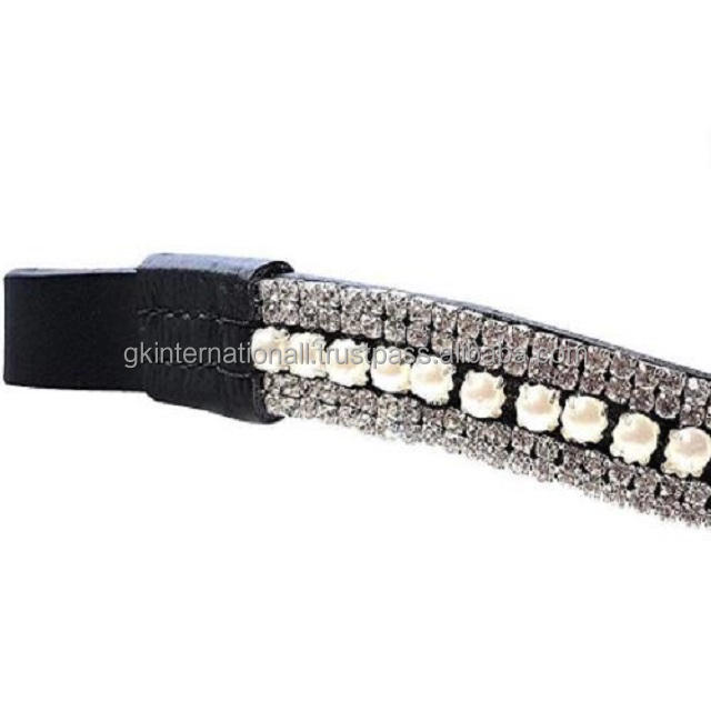 Nuevo diseño, diseño personalizado, 5 filas de perlas y cristales transparentes, cadena de diamantes, banda de cuero para doma de caballo en tamaños completos de mazorca