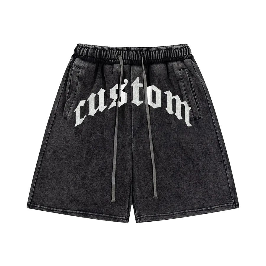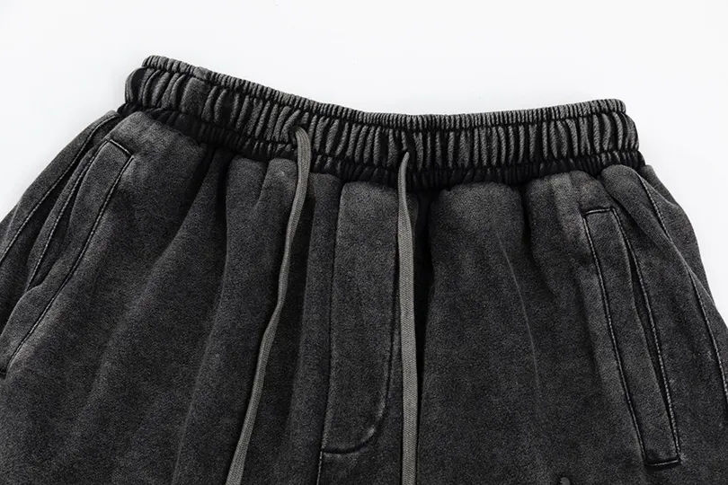 Pantalones Cortos de Hombre de Felpa Francesa con Diseño Nuevo y Bordado Desgastado, Estilo Vintage, Lavado al Sol, Efecto Ácido