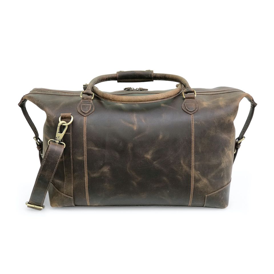 Bolsa de Viaje Deportiva Multifuncional Ecológica de Cuero Genuino de Grano Completo Hecha a Mano para Mujer, Fabricada en India