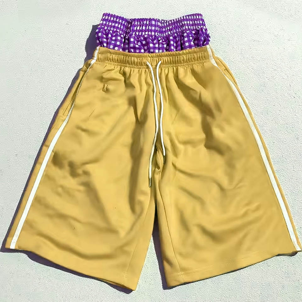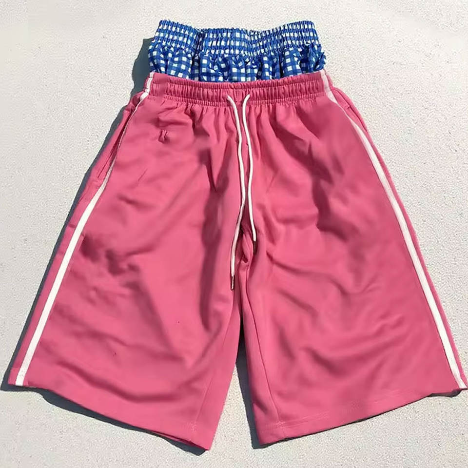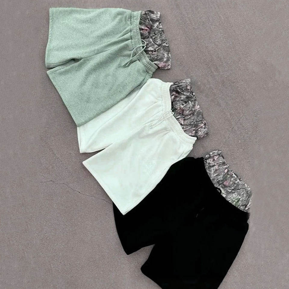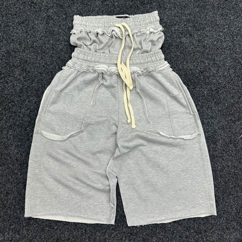 Pantalones Cortos Deportivos de Algodón Grueso con Cordón Ajustable, Diseño Nuevo, Lavado Ácido, Doble Cintura, Largos hasta la Rodilla