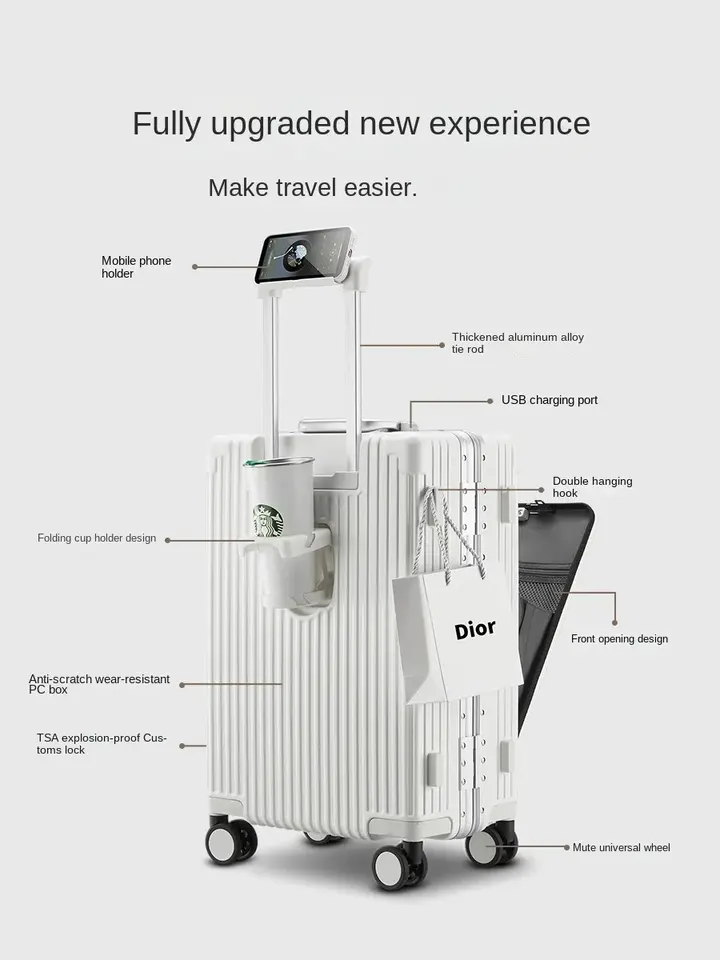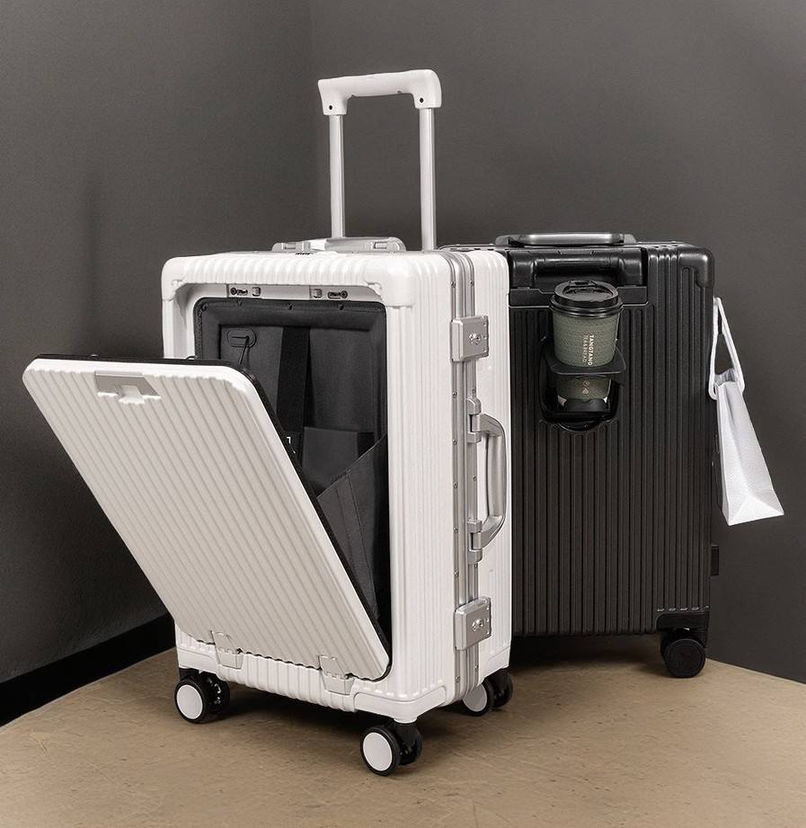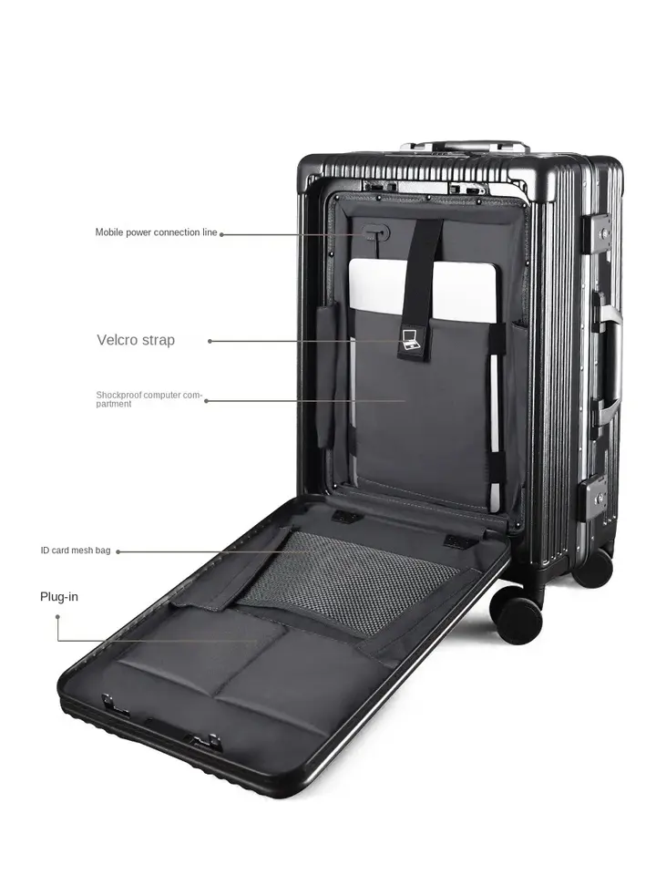 Maleta de equipaje ABS con logotipo personalizado, carrito con ruedas giratorias, nuevo diseño, bolsillo de Apertura frontal separado para compartimento de ordenador