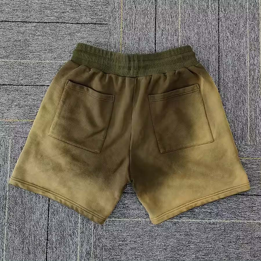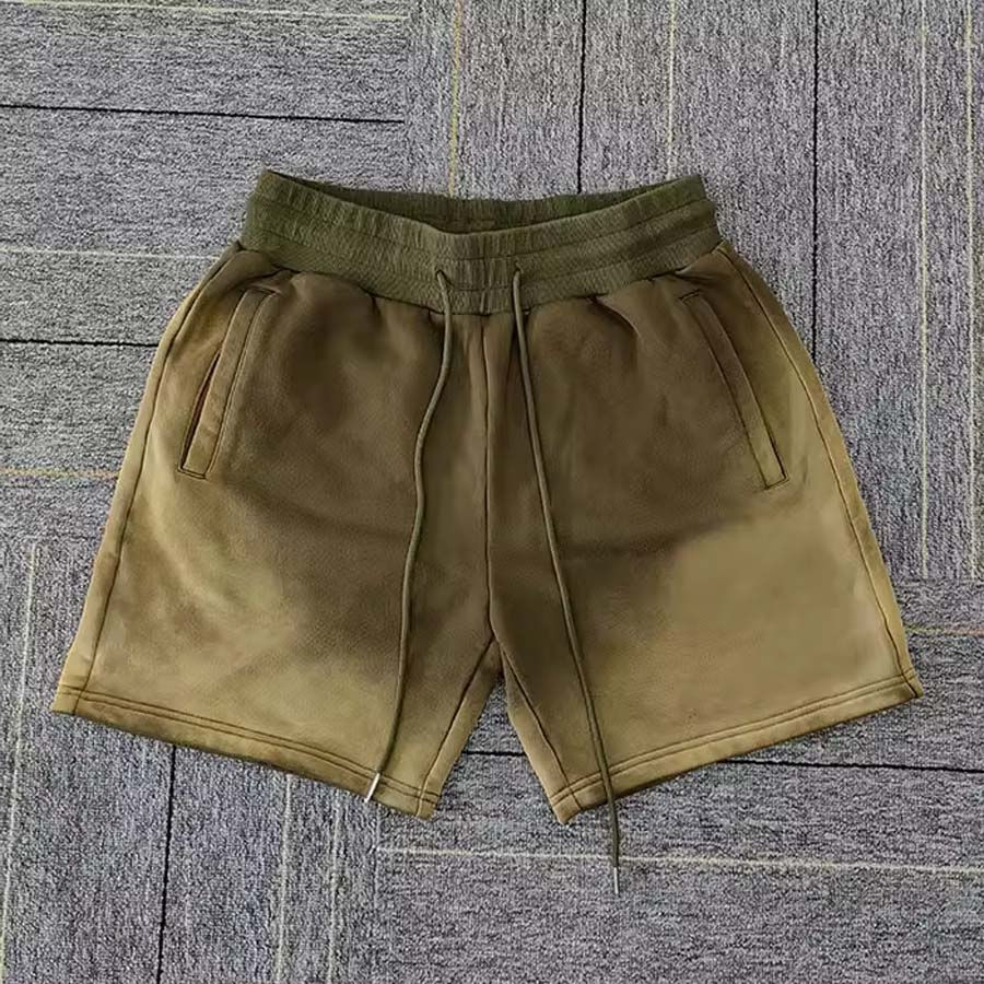 Nuevo diseño de logotipo personalizado lavado de algodón francés Terry desgastado Vintage hombres lavado ácido pantalones cortos longitud de la ropa regular