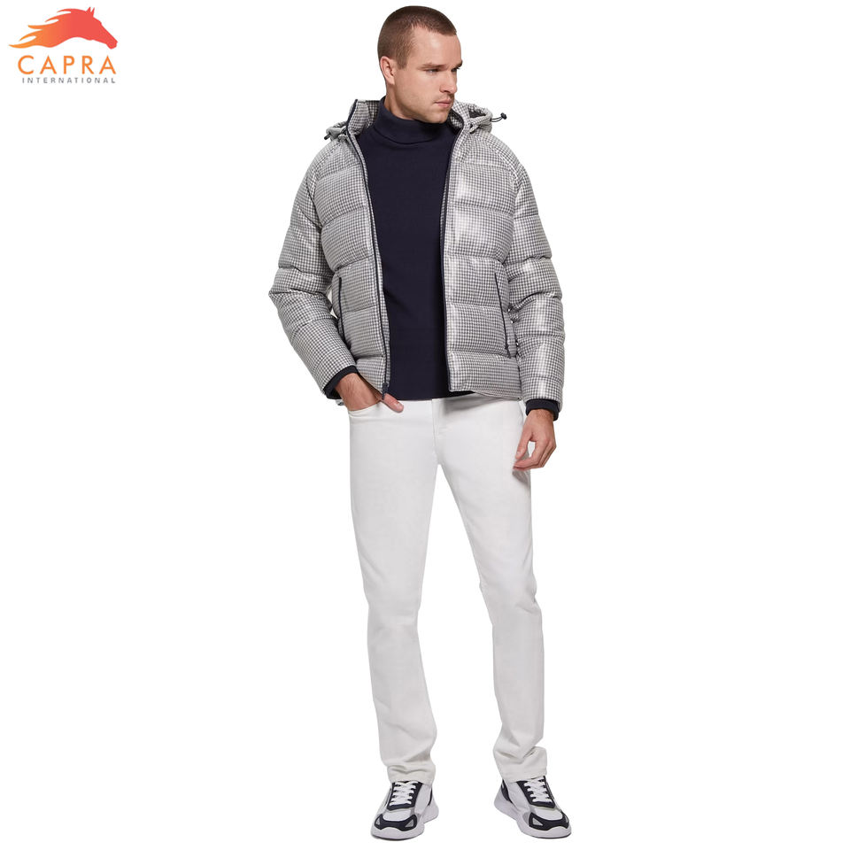 Chaqueta Acolchada de Invierno para Hombre, Diseño Nuevo, Logotipo Personalizado, con Capucha, Resistente al Viento, Ecológica, con Revestimiento, Cuello Alto Delgado y Largo