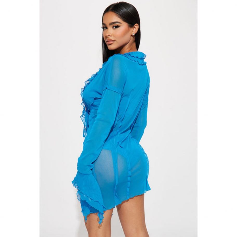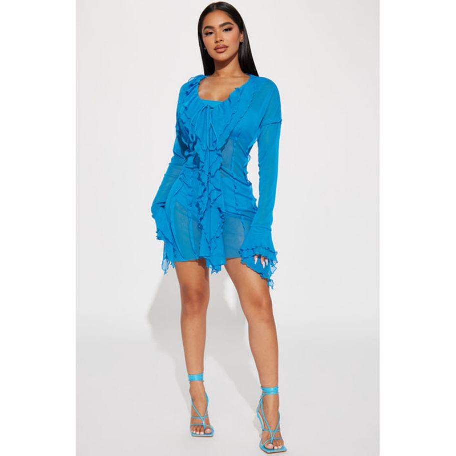 Nuevo Diseño, Vestido Sexy de Fiesta para Mujer, Personalizado, con Malla, Manga Larga y Detalle de Volantes