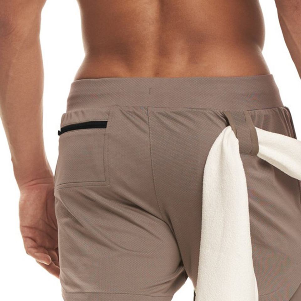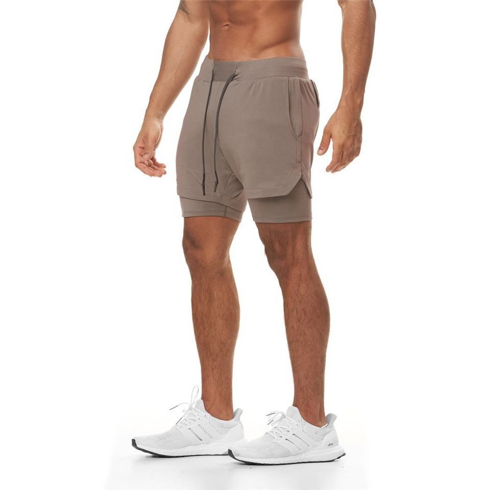 Pantalones cortos deportivos de verano para hombre personalizados, nuevo diseño, doble capa, gimnasio, Fitness, culturismo, entrenamiento, transpirables, patrón sólido