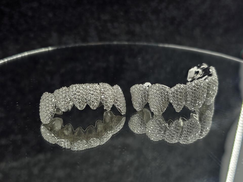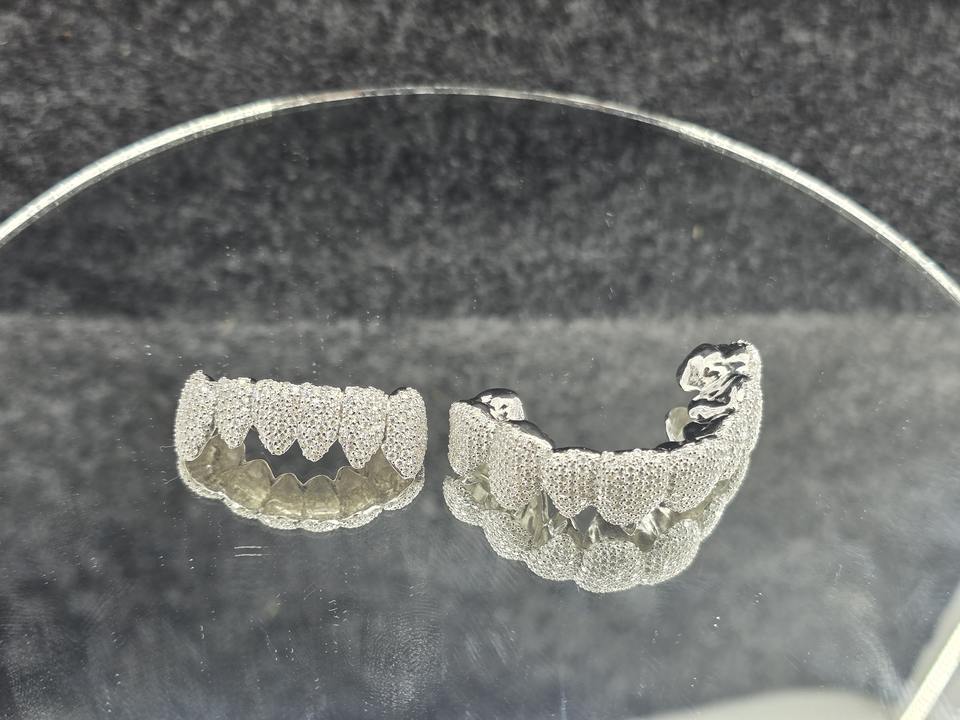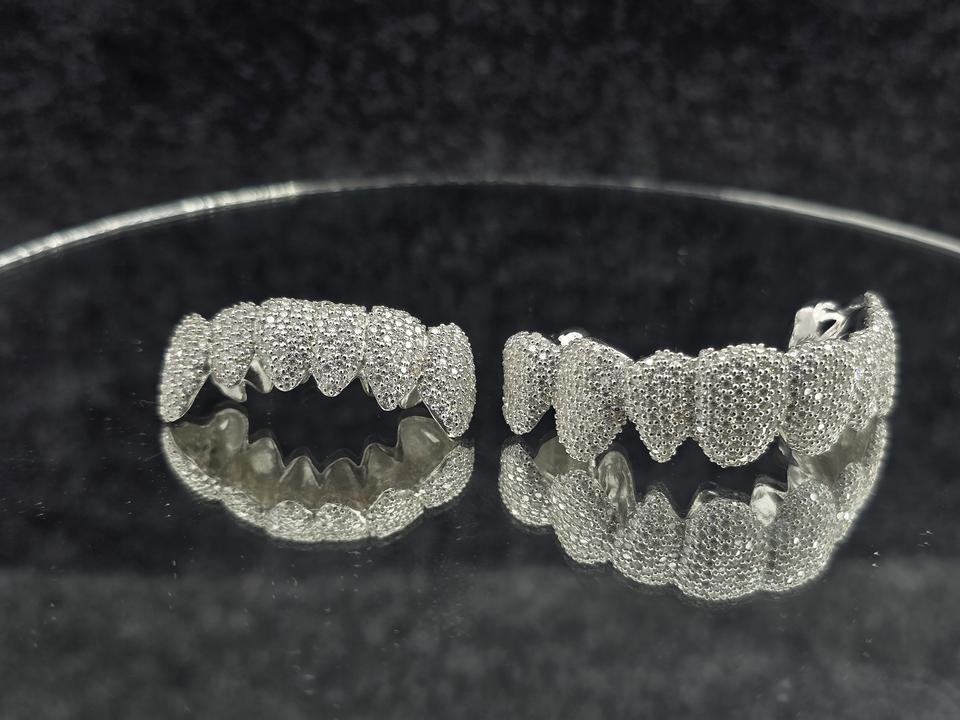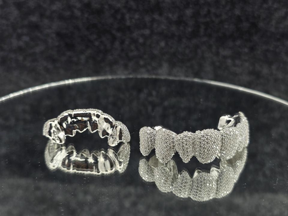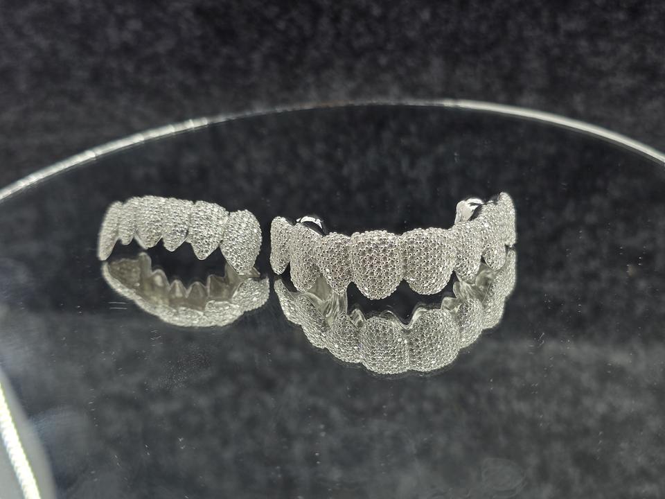 Nuevo Diseño Personalizado de Grillz de 16 Dientes con Incrustaciones de Diamantes de Imitación, en Oro Blanco, para Hombre y Mujer, Plata 925, D VVS, Moissanita, para Compromiso y Boda