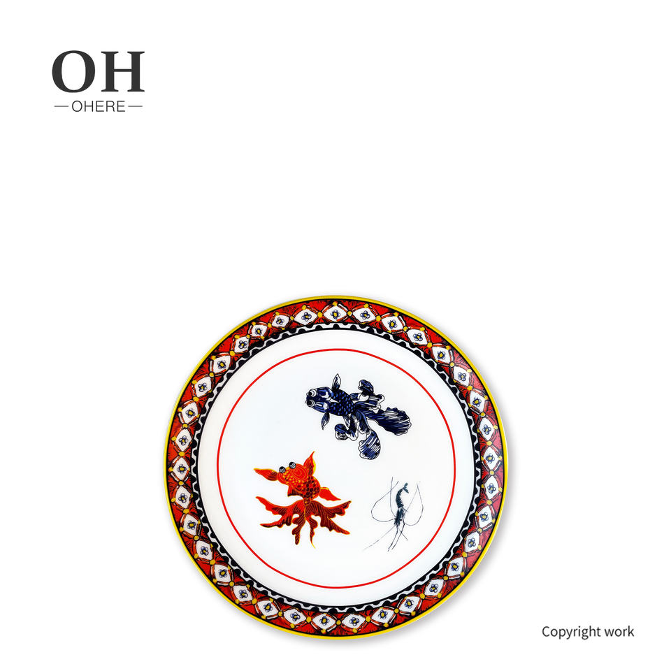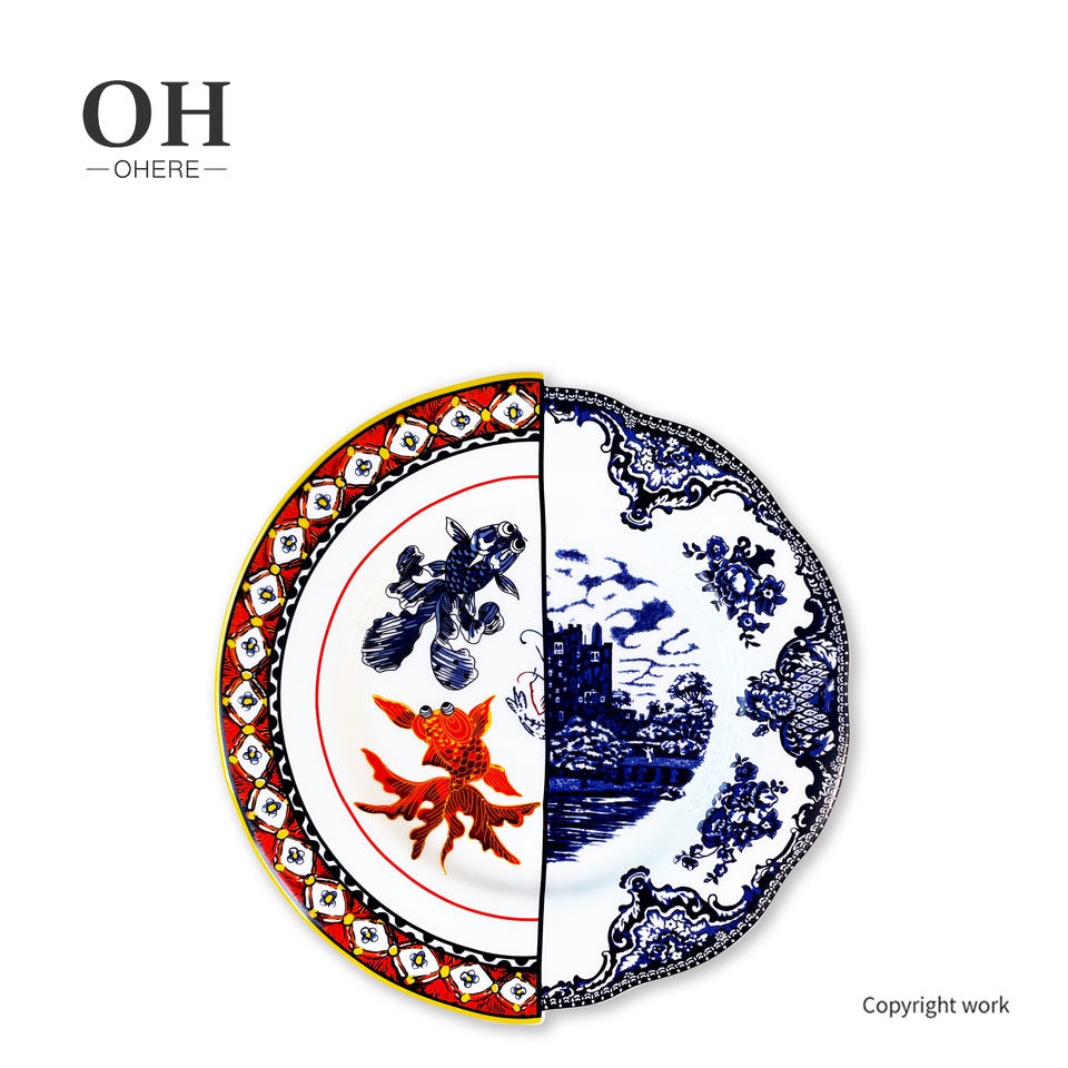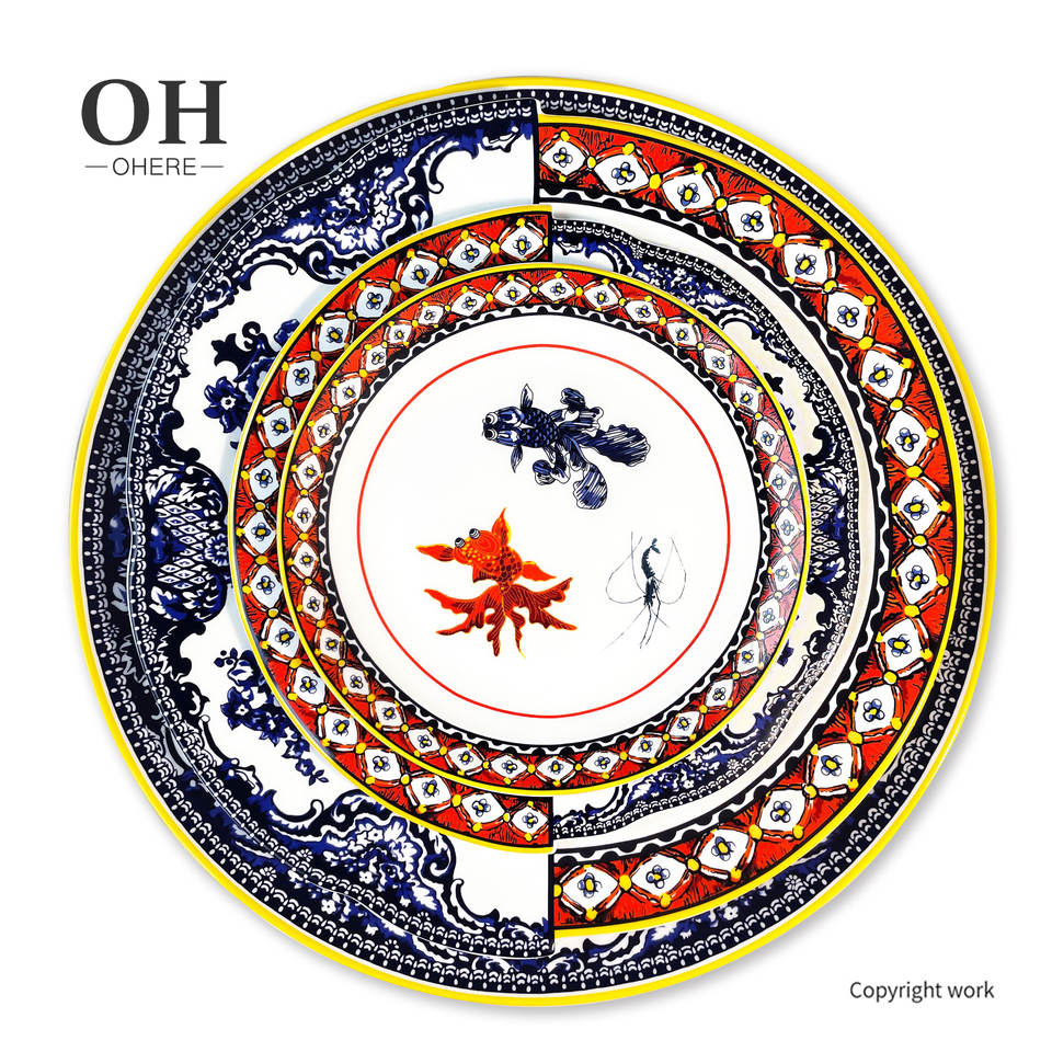 Juego de cena de nuevo diseño, juego de platos irregulares de lujo, vajilla de lujo con peces y flores de estilo chino para eventos, catering y alquiler