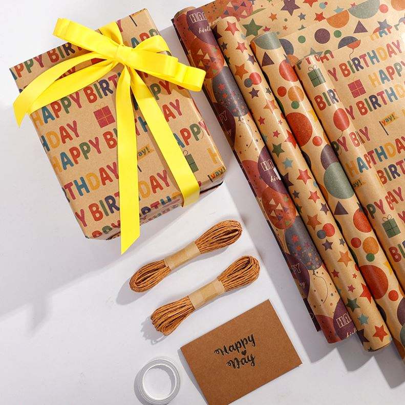 Papel de Regalo Impreso para Cumpleaños Infantiles con Recubrimiento de Silicona Desechable de Nuevo Diseño, Rollo de Embalaje de 43x300cm